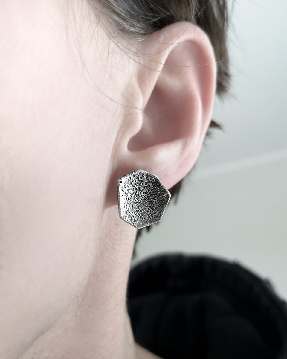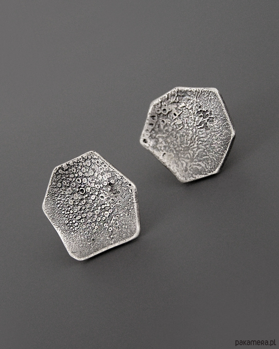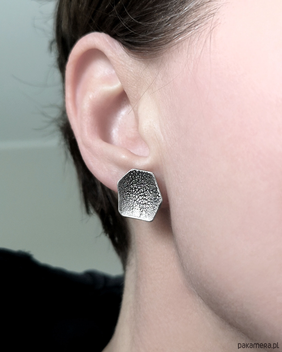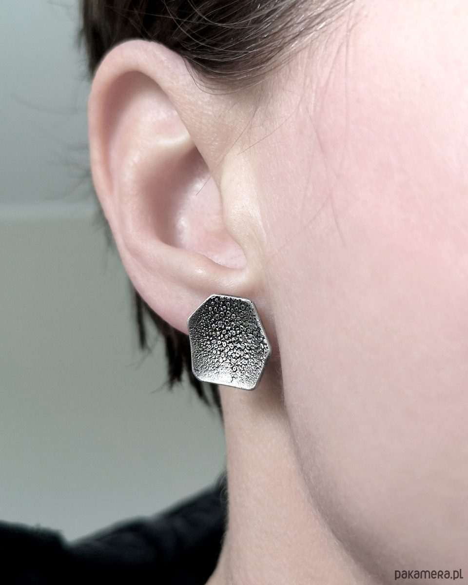 Unikatowe asymetryczne surowe Kolczyki sztyfty wykonane ze srebra próby 925.