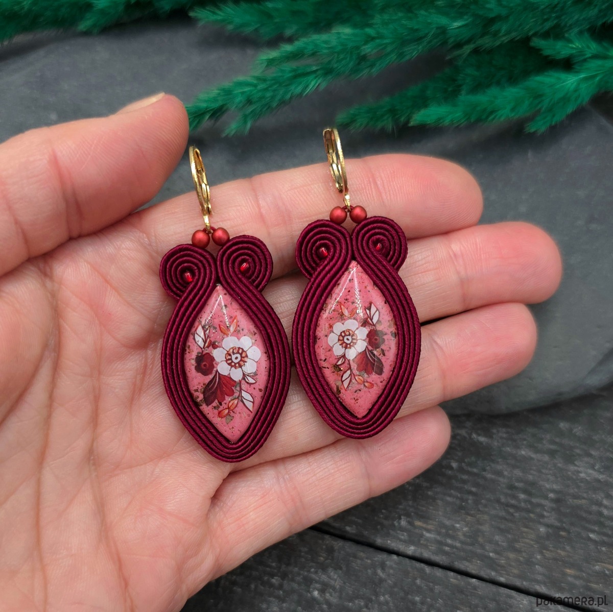 Kolczyki sutasz bordowe handmade z glinki małe lekkie codzienne Resina
