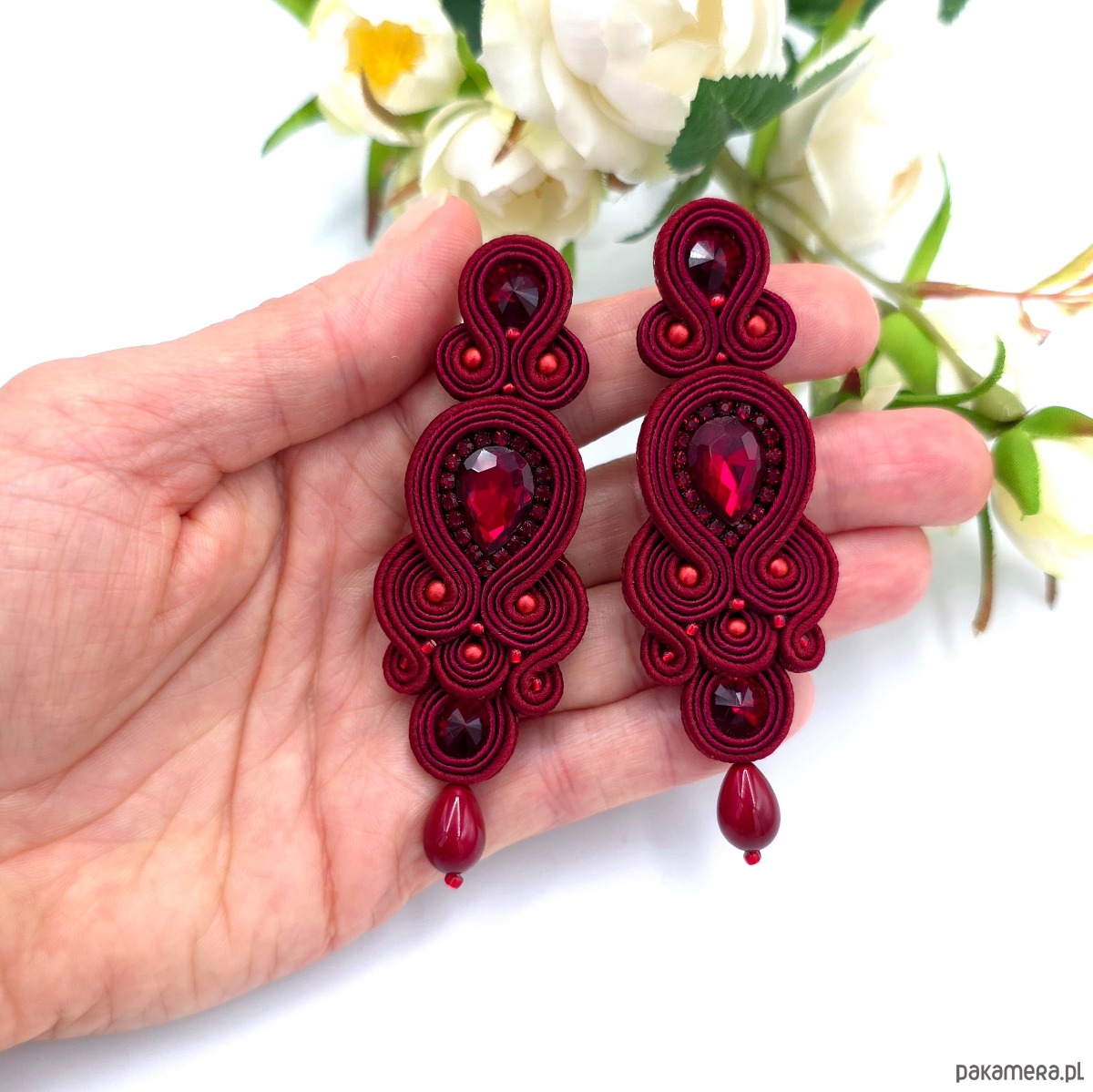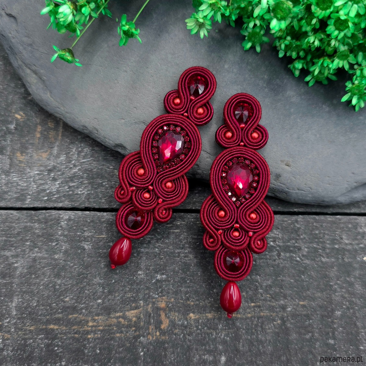 Kolczyki sutasz bordowe Keira wieczorowe eleganckie z kryształkami