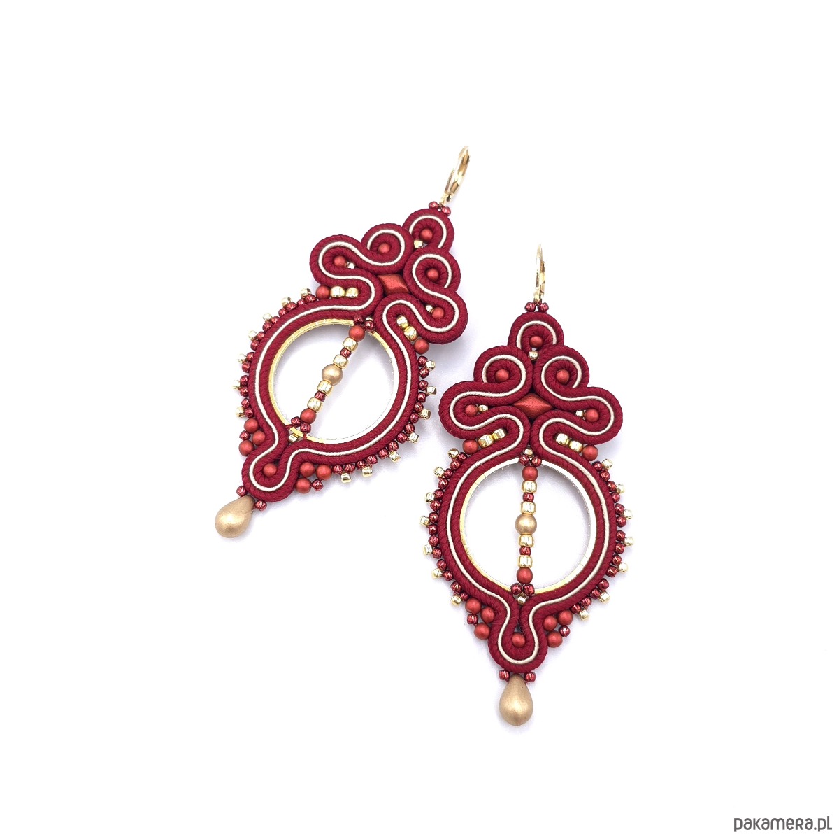 Kolczyki sutasz bordowe lekkie wiszące eleganckie koła handmade Paloma