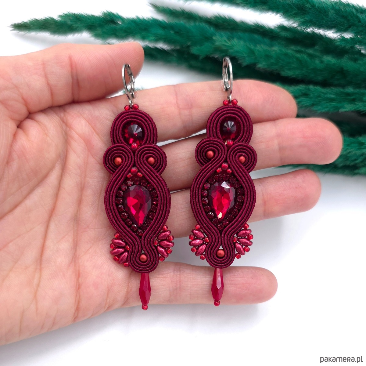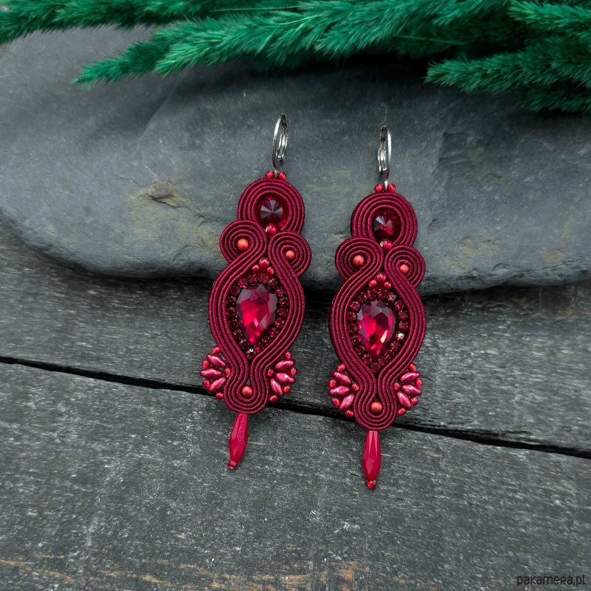 Kolczyki sutasz bordowe Orina długie wieczorowe z kryształami