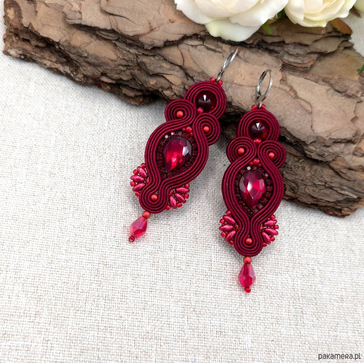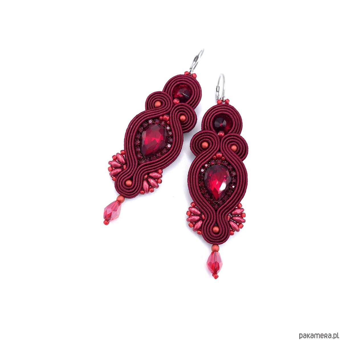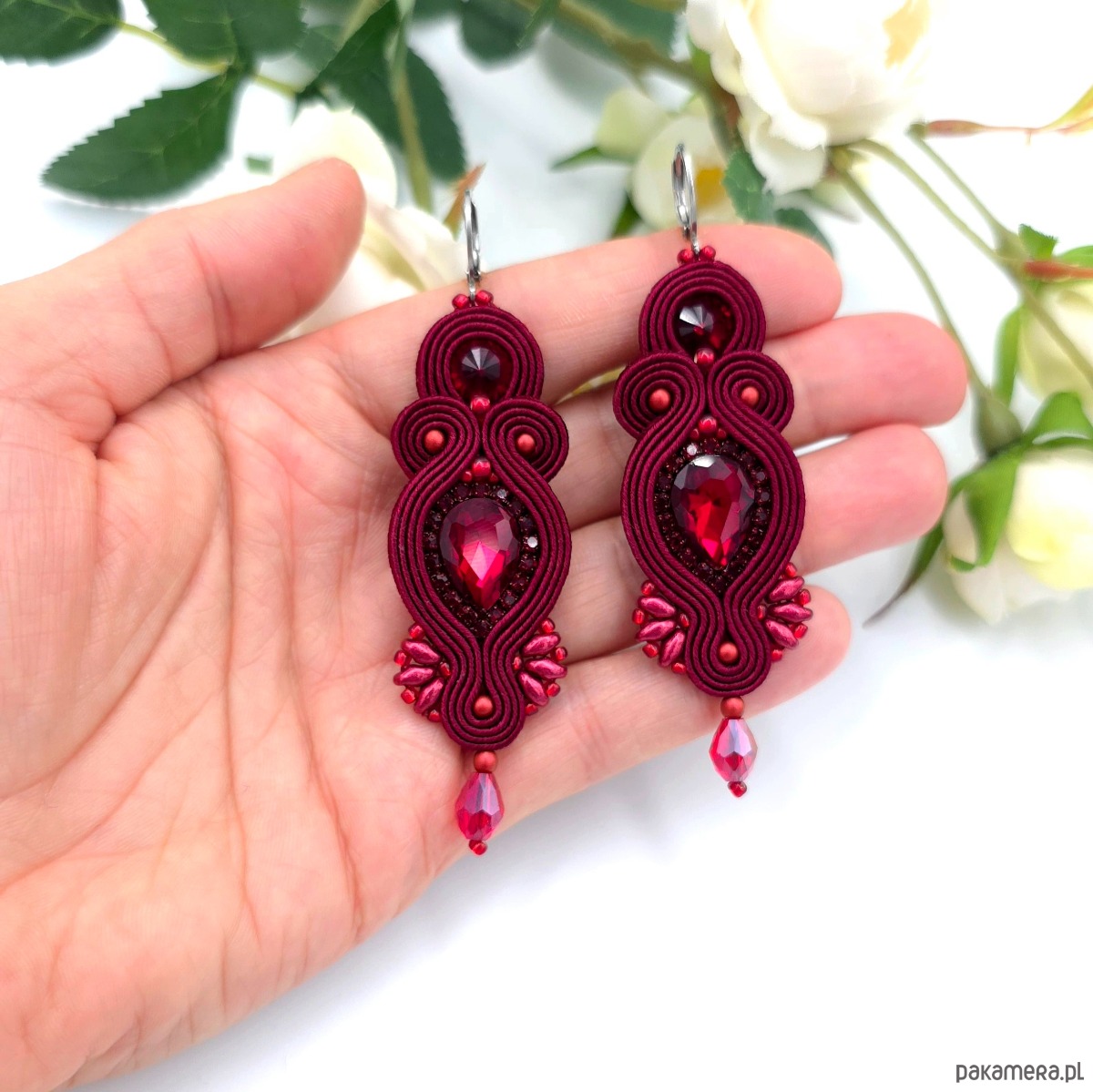 Kolczyki sutasz bordowe Orina długie wiszące wieczorowe z kryształami