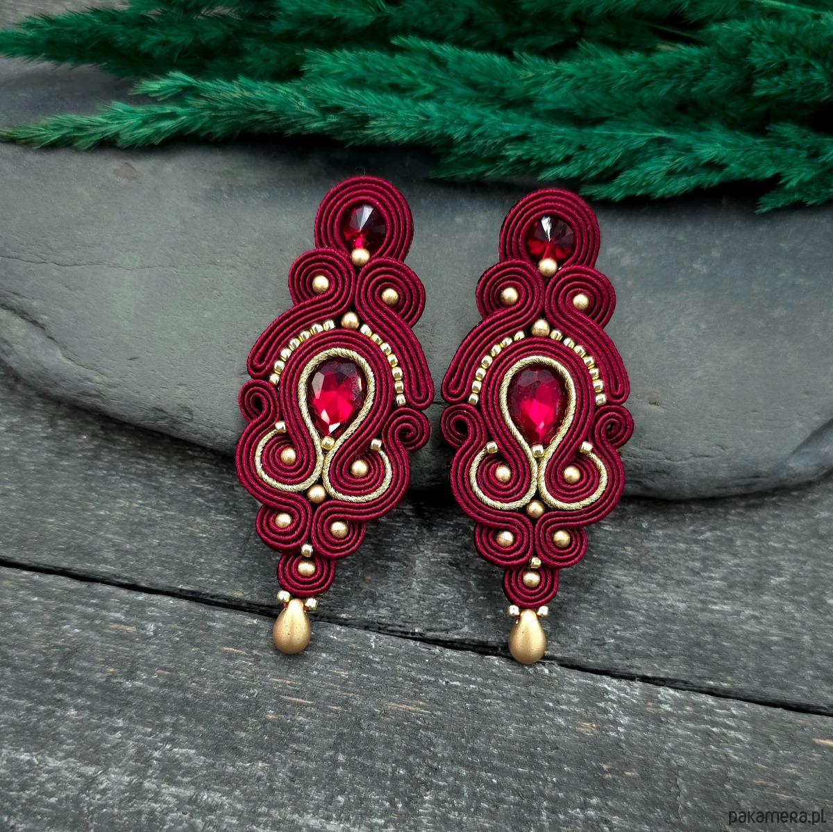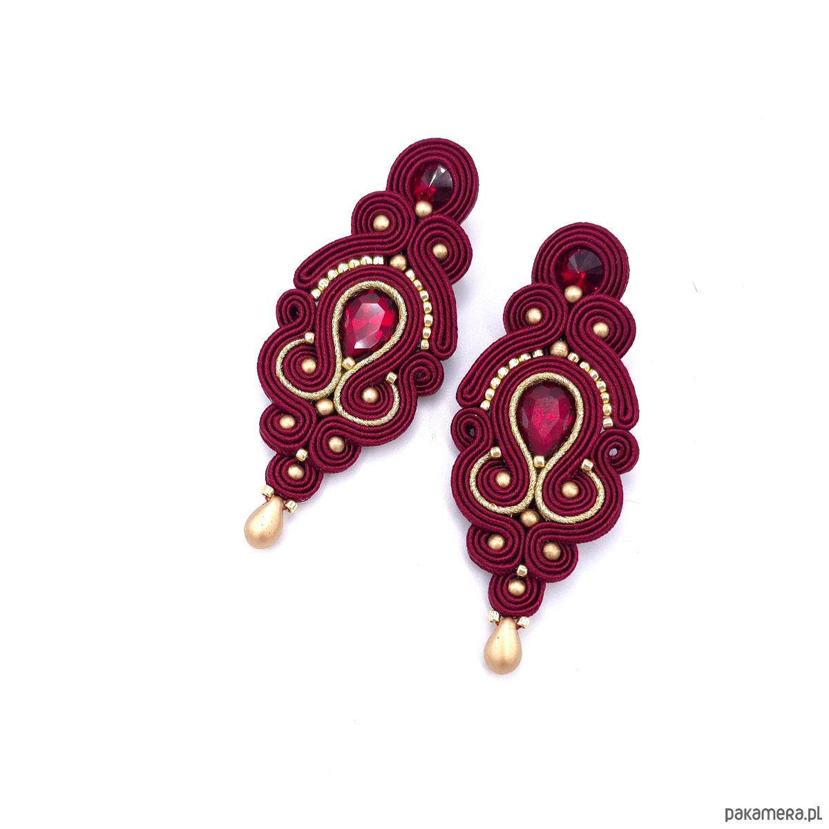 Kolczyki sutasz w odcieniu głębokiego bordo urzekają elegancją i misternie ułożonymi sznureczkami.