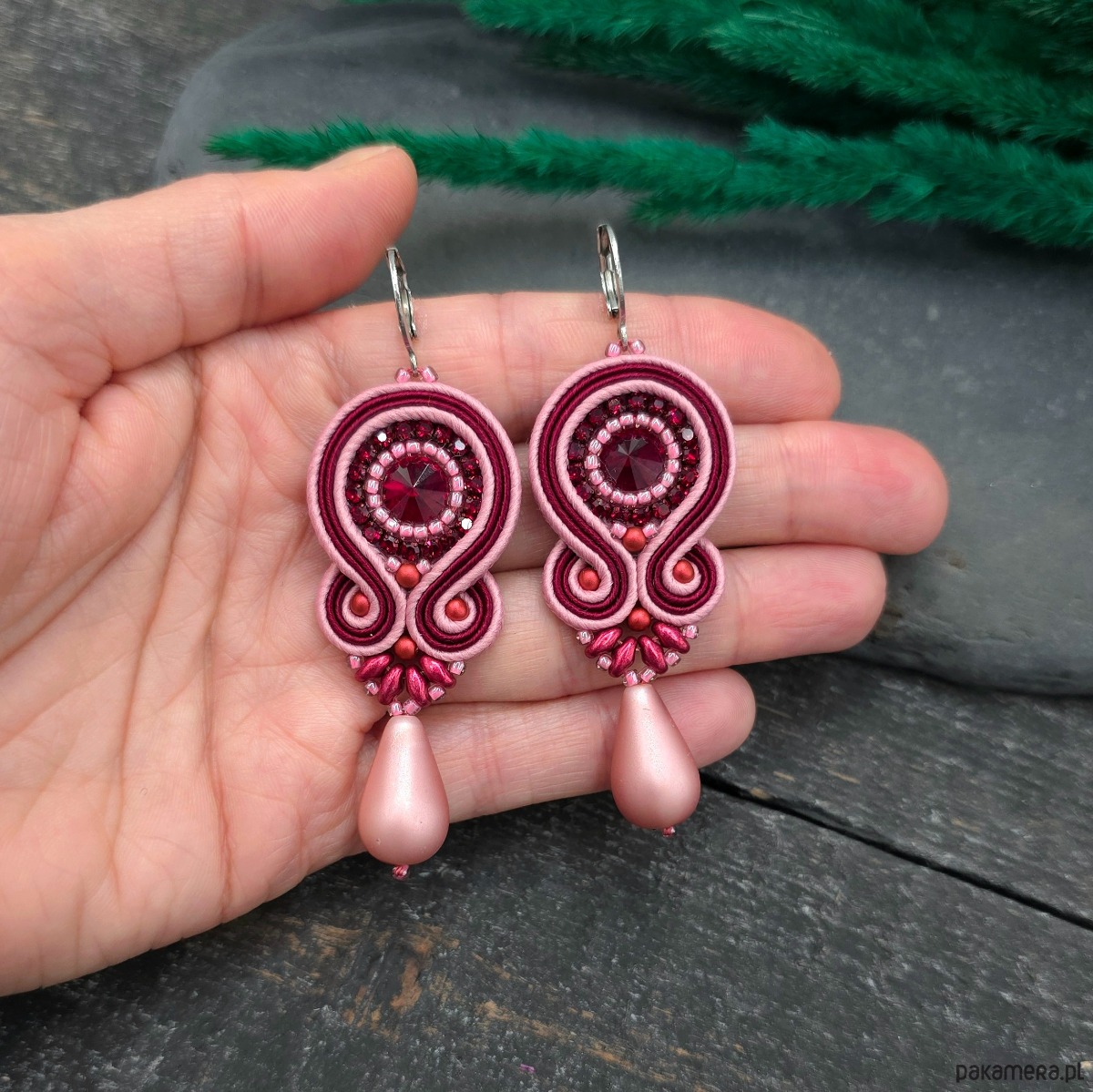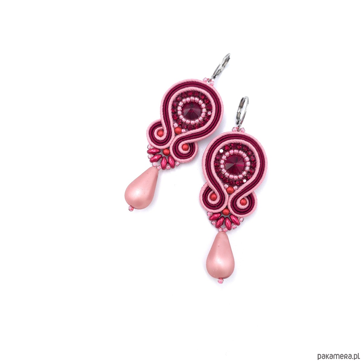 Kolczyki sutasz bordowo różowe kolorowe wiosenne z dużą łezką Cleo