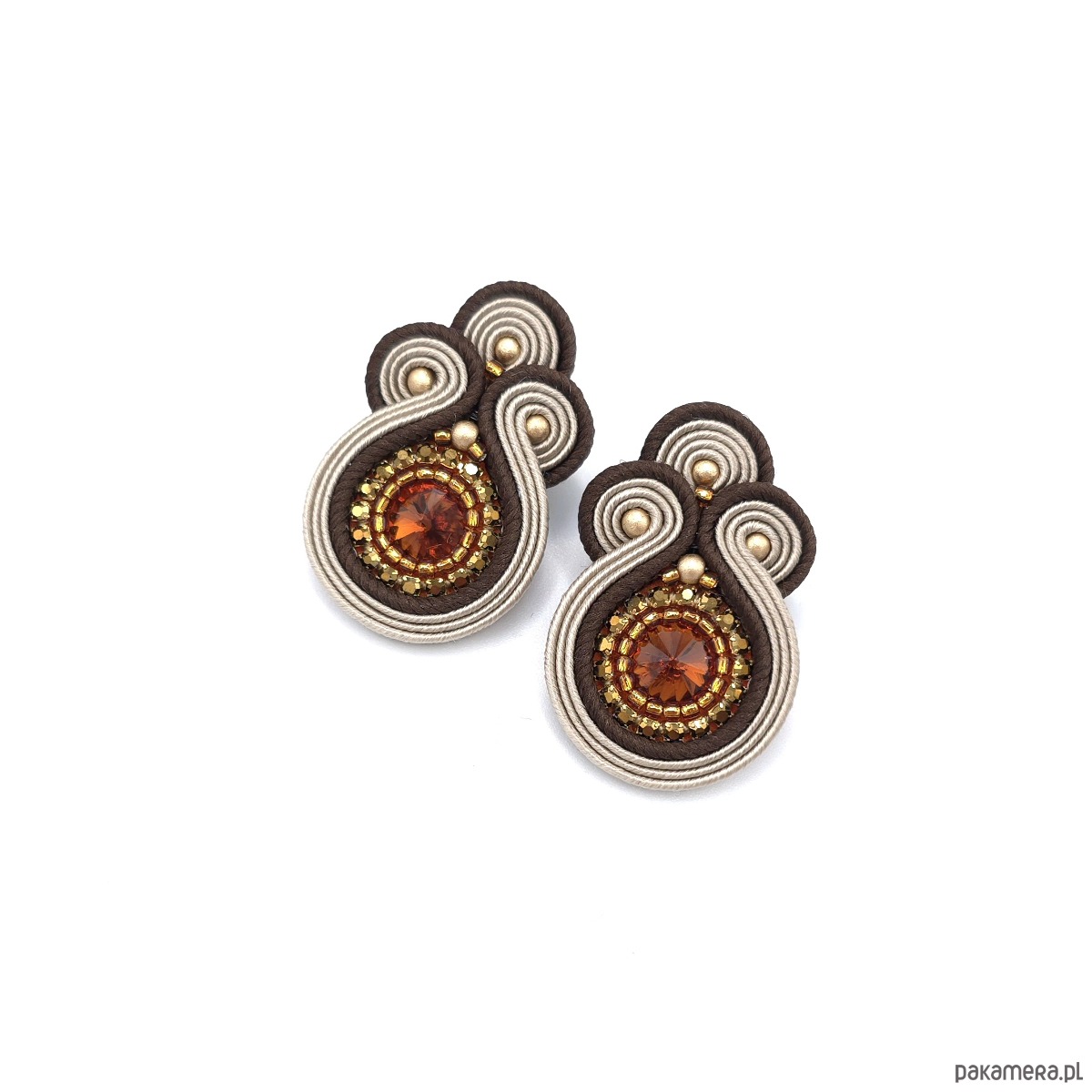 Kolczyki sutasz brązowe bursztynowe sztyfty małe Gracia z kryształkami