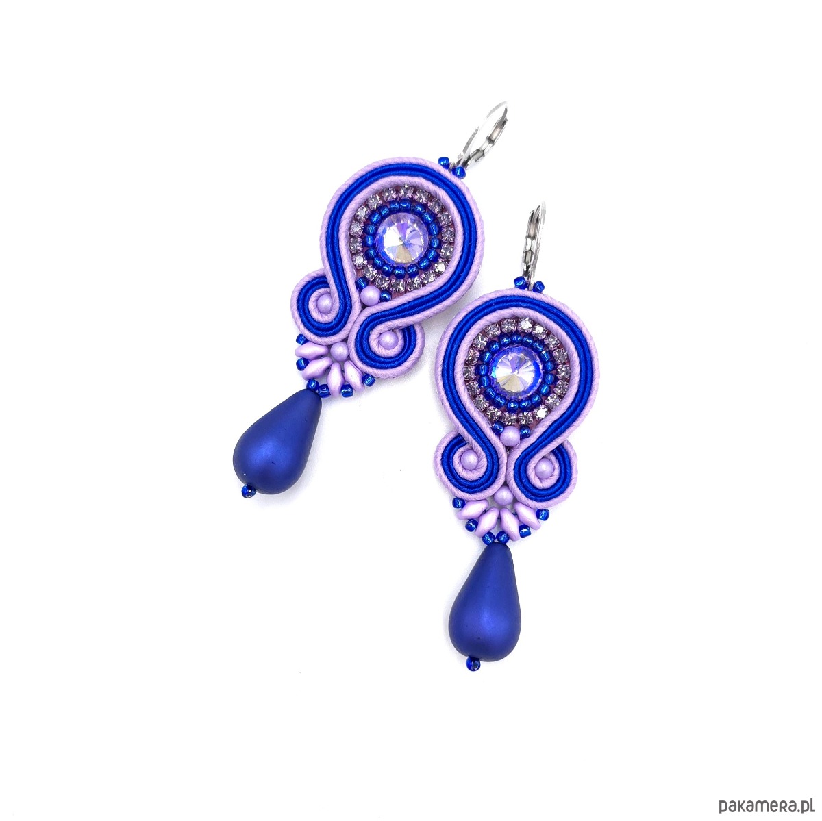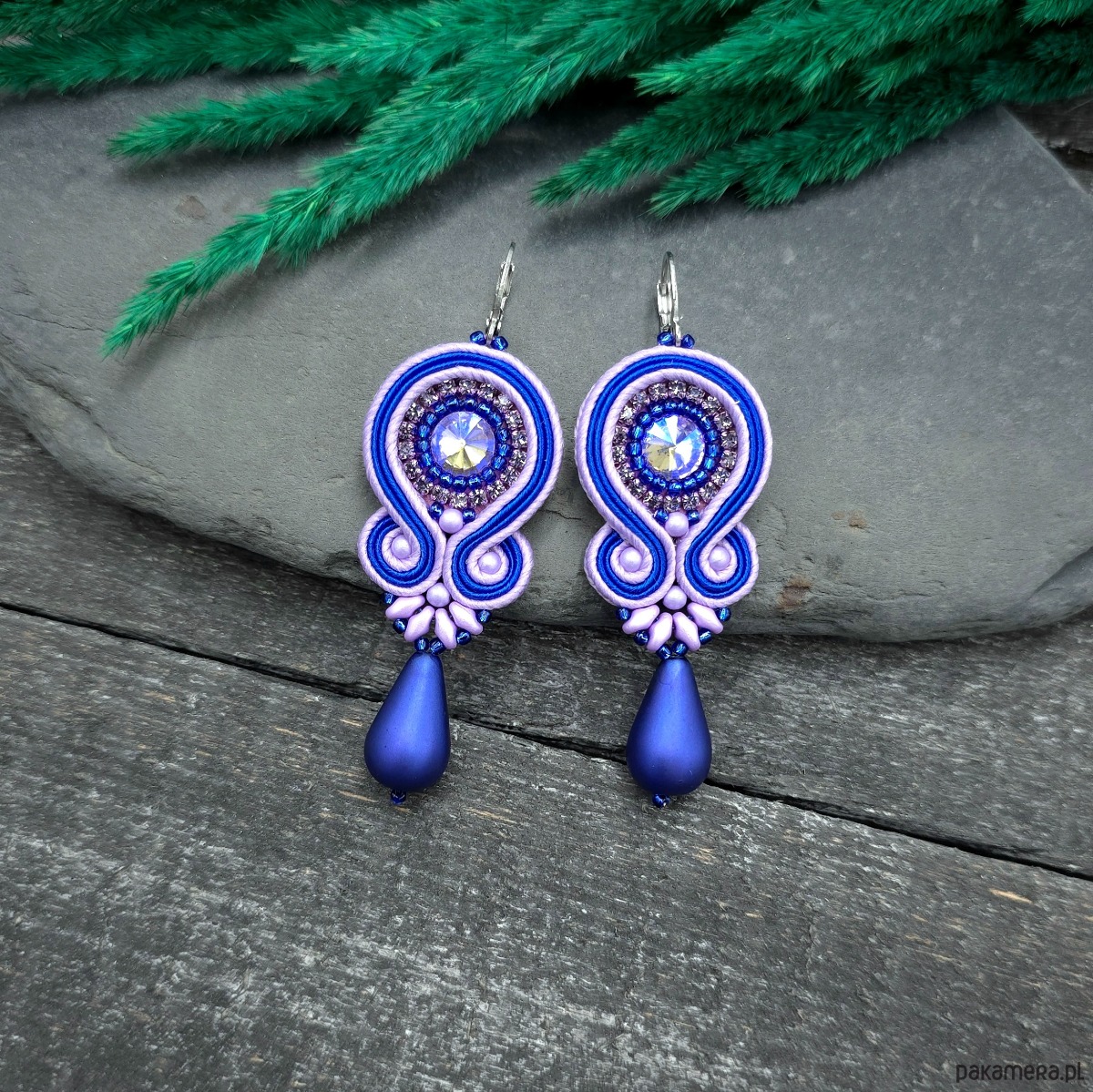 Kolczyki sutasz chabrowo lawendowe kolorowe Cleo z dużą łezką