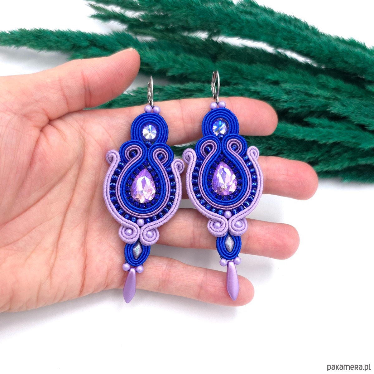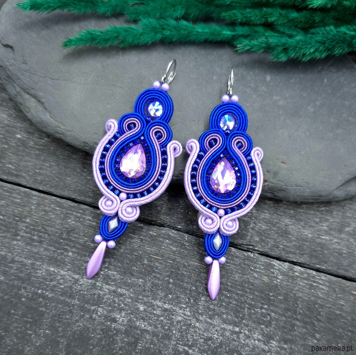 Kolczyki sutasz chabrowo lawendowe kolorowe Margo długie romantyczne
