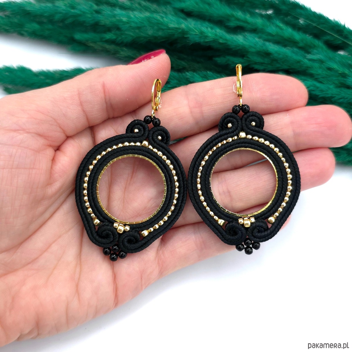 Kolczyki sutasz czarne kółka Jolly lekkie okrągłe romantyczne