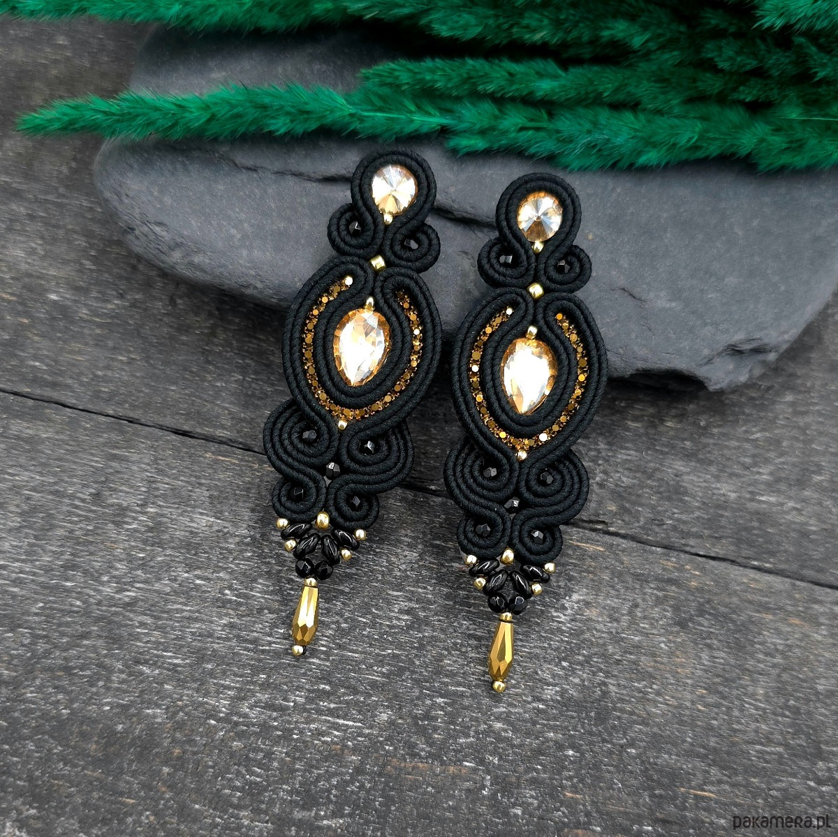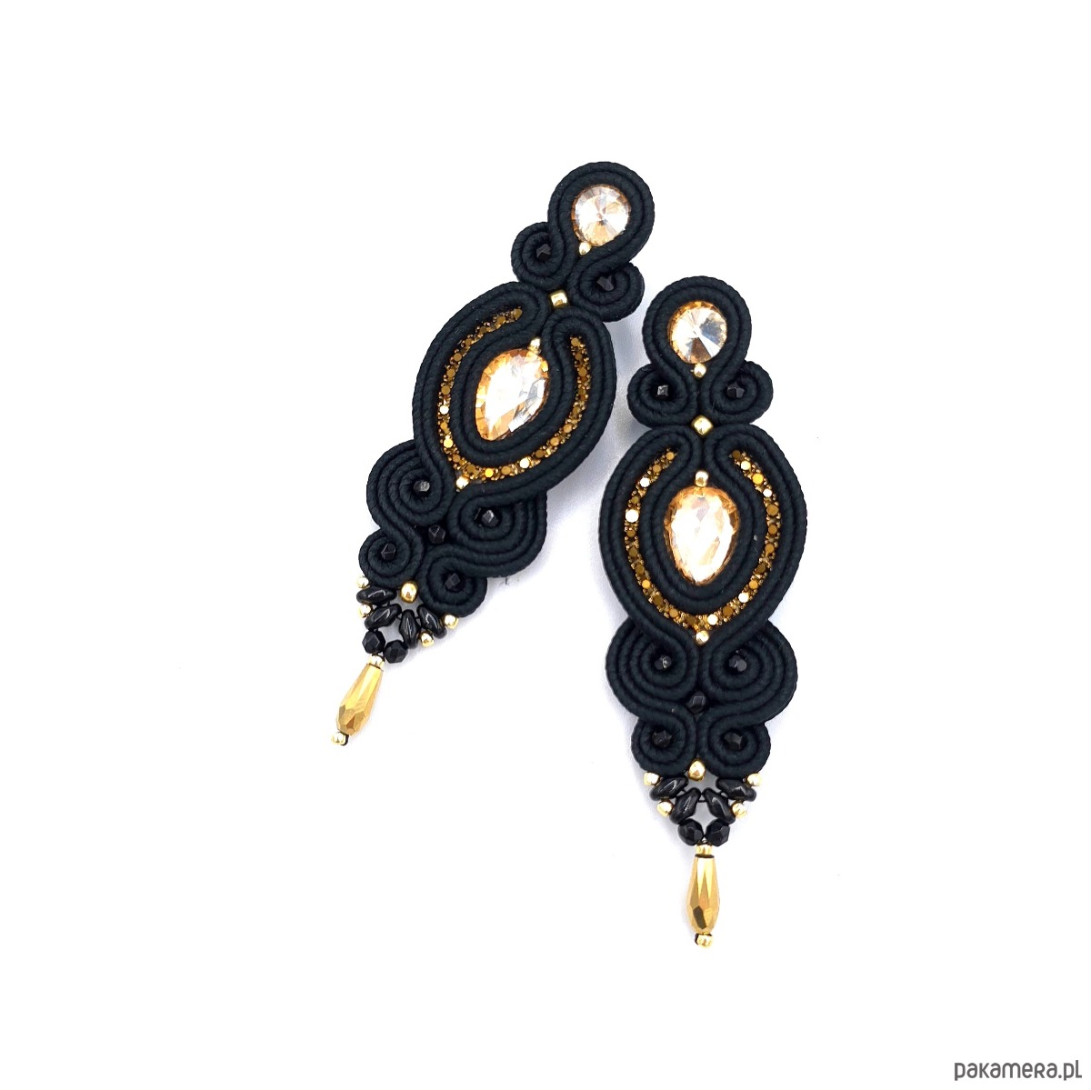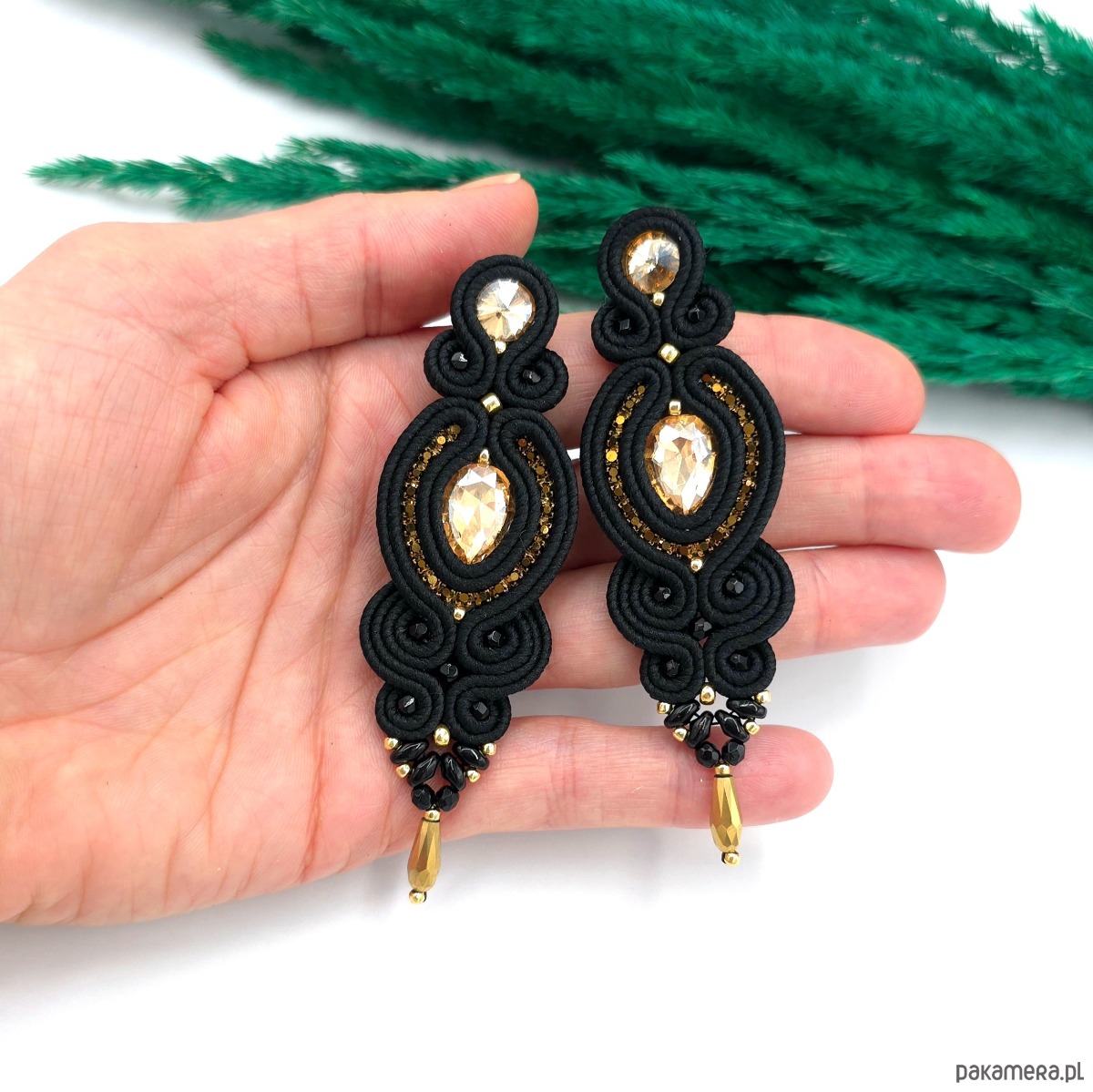Kolczyki sutasz czarne ze złotem Ismara wieczorowe z kryształkami