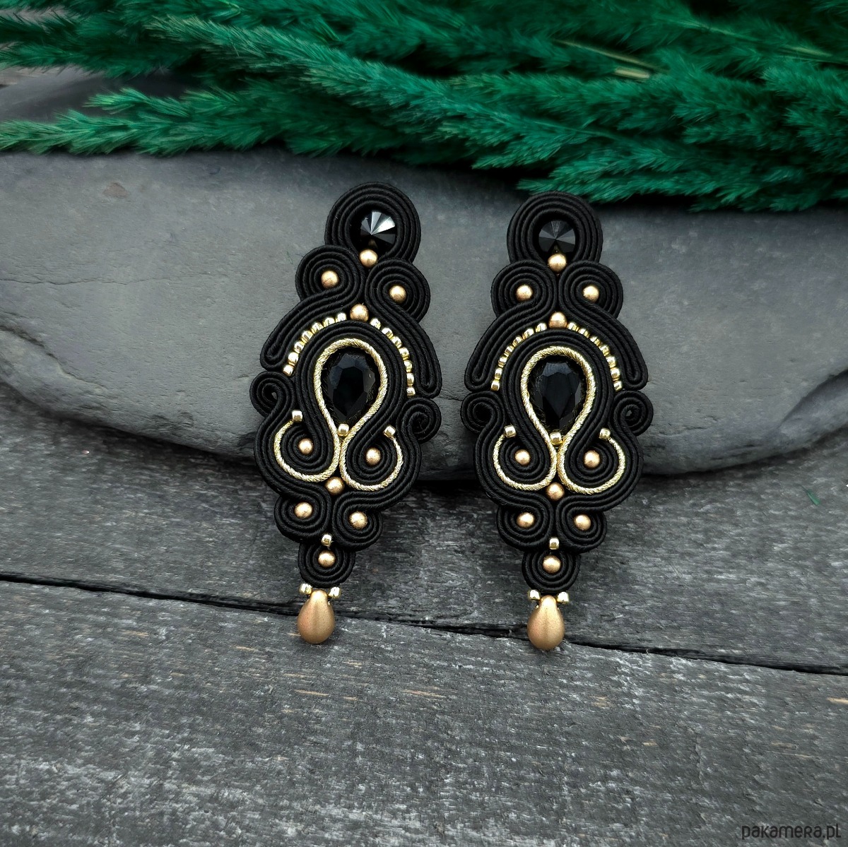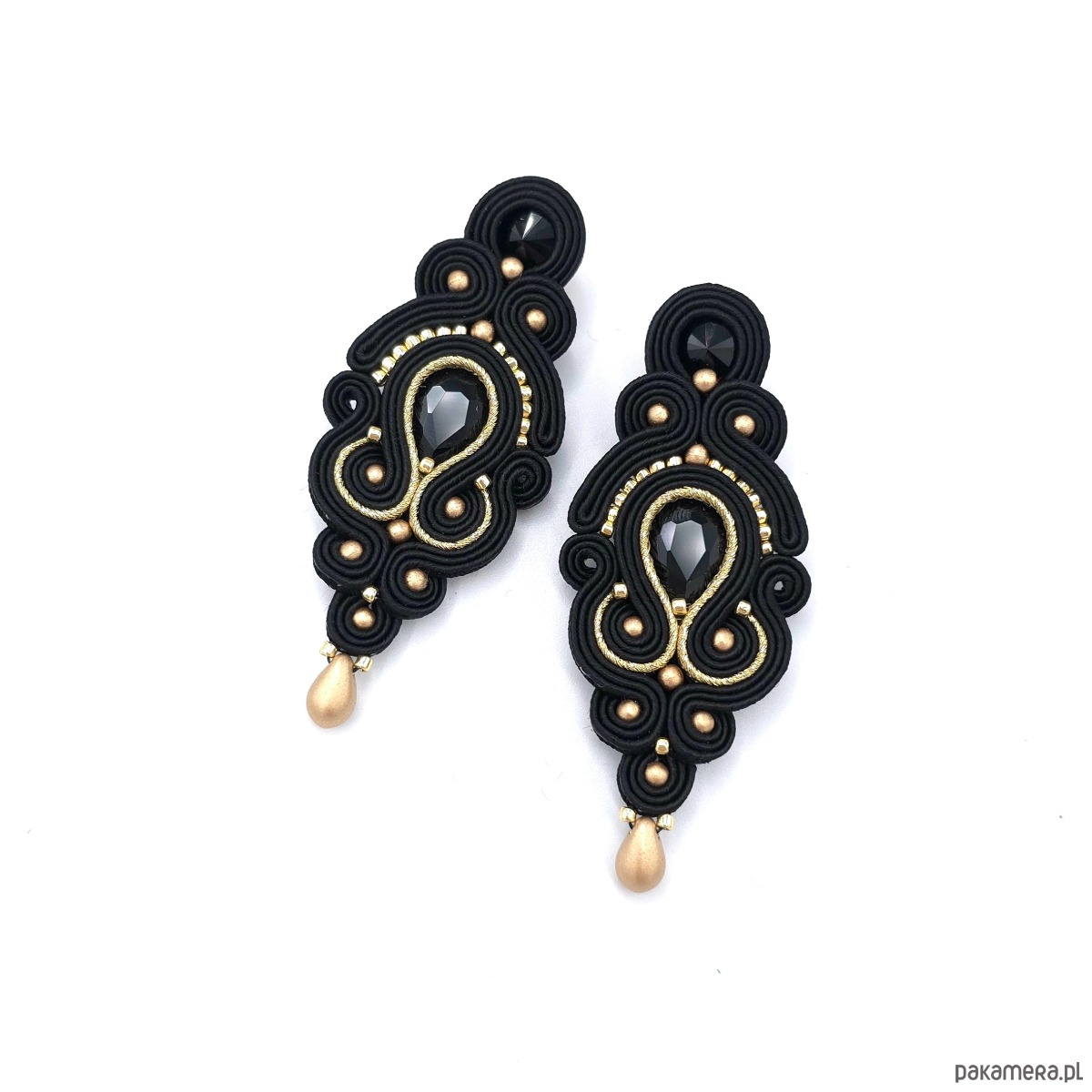 Kolczyki sutasz w odcieniu głębokiej czerni urzekają elegancją i misternie ułożonymi sznureczkami.