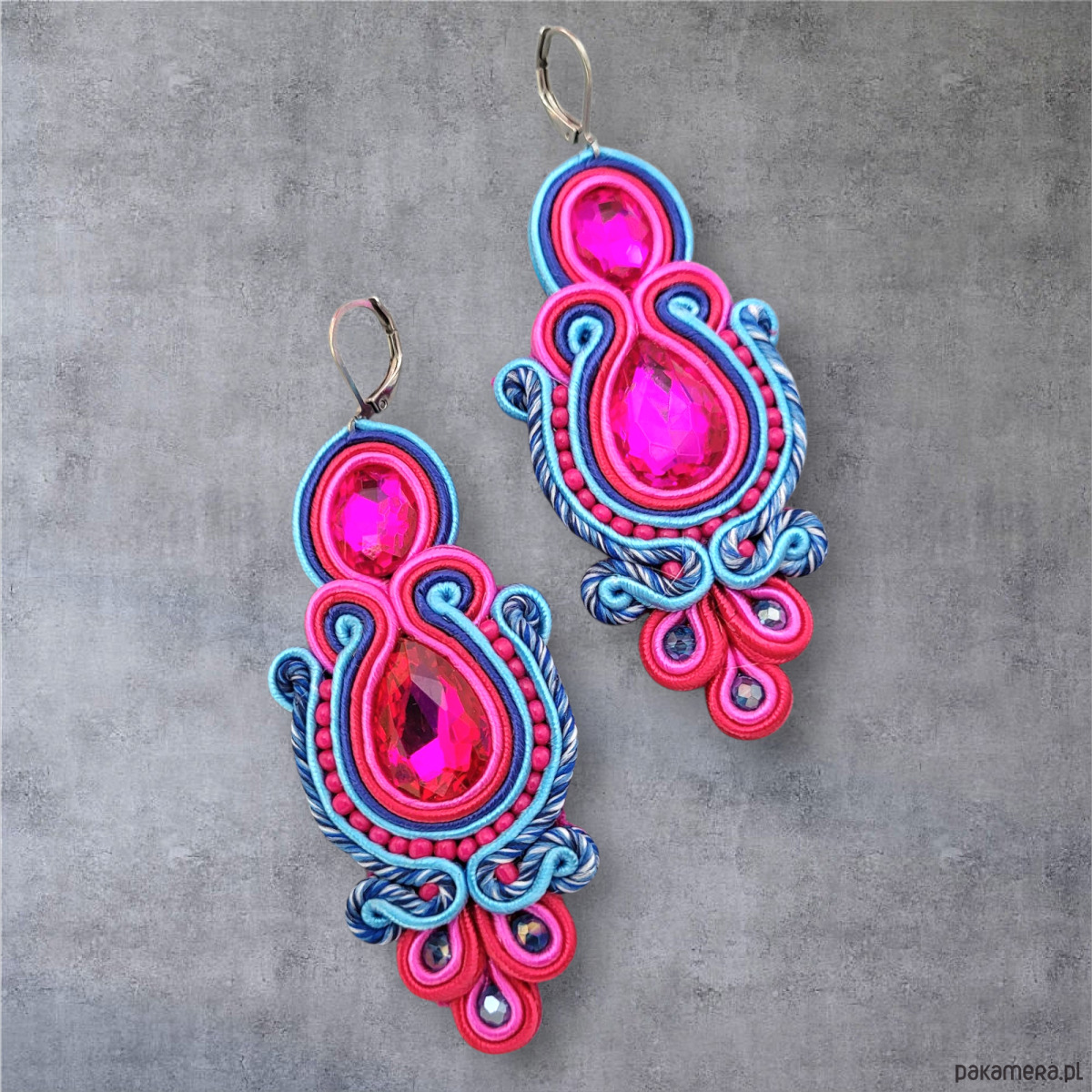 Lekkie kolczyki wykonane pracochłonną techniką haftu sutasz.