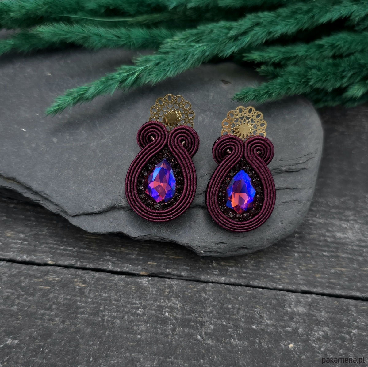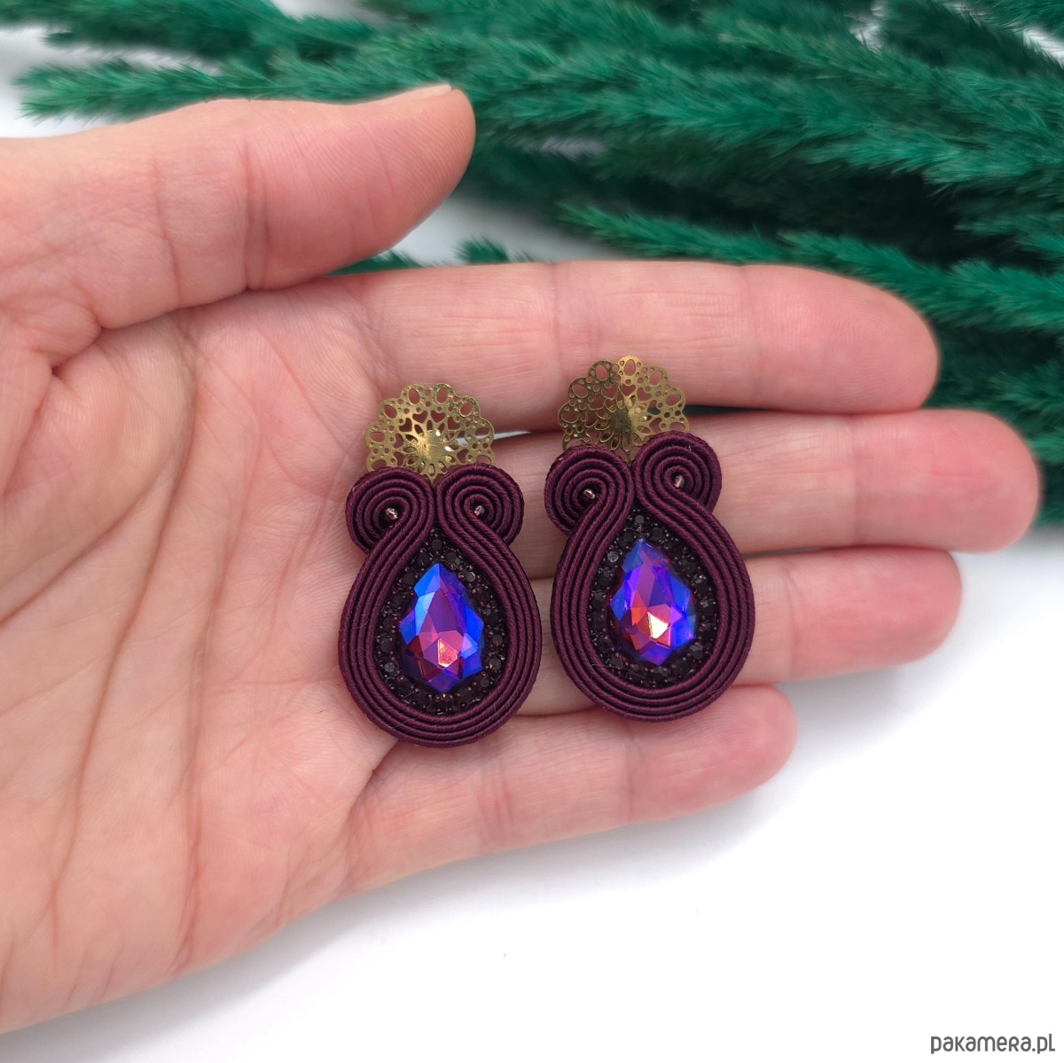 kaboszony kryształki, taśma z cyrkoniami, koraliki Toho, czeskie sznurki sutasz, sztyfty kwiatki ze stali chirurgicznej.