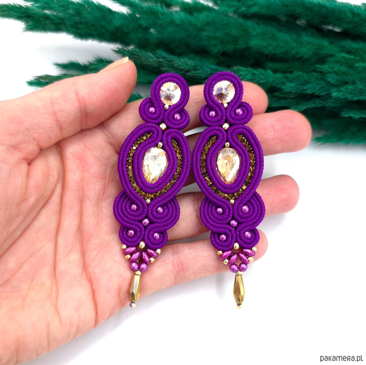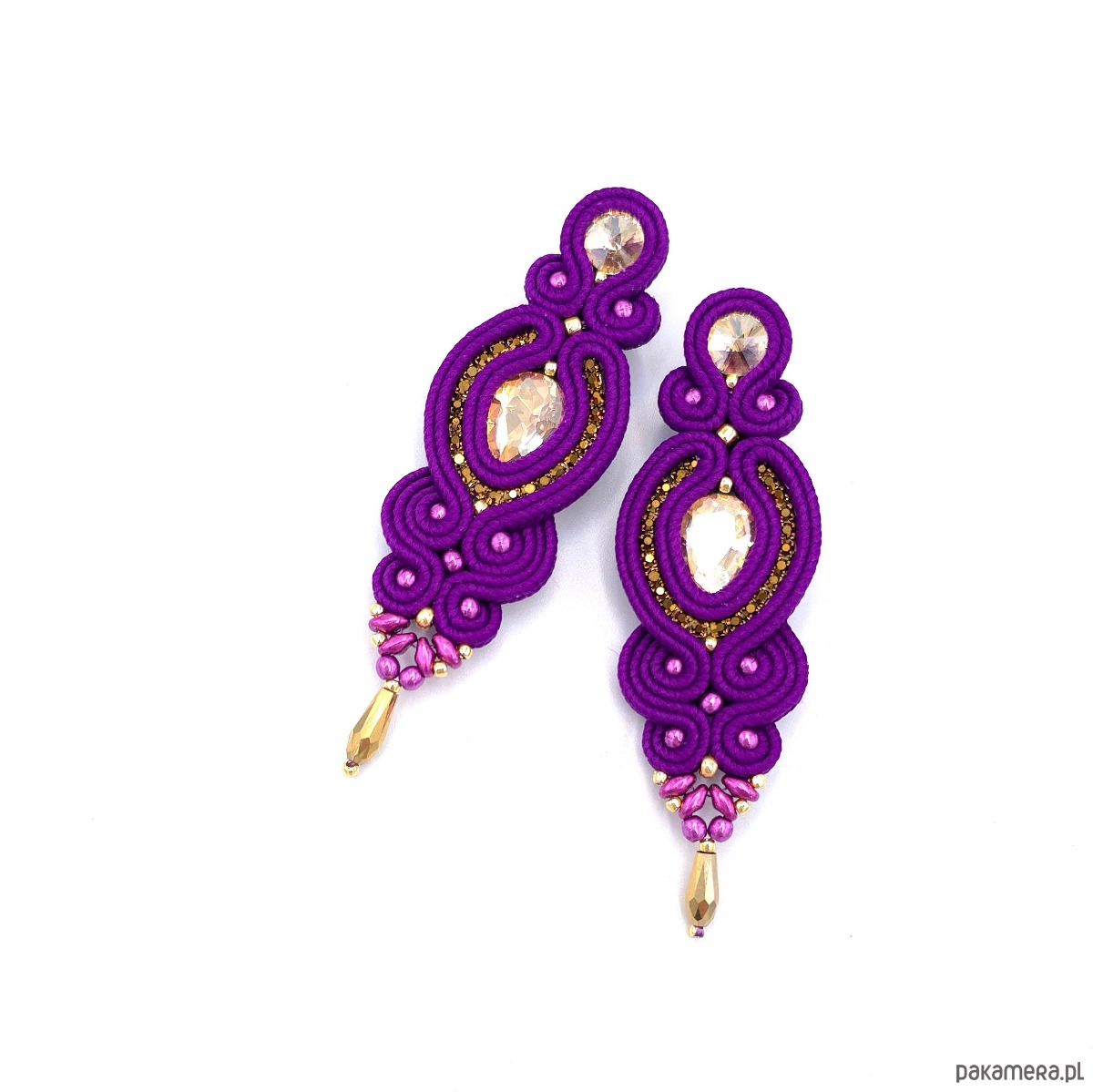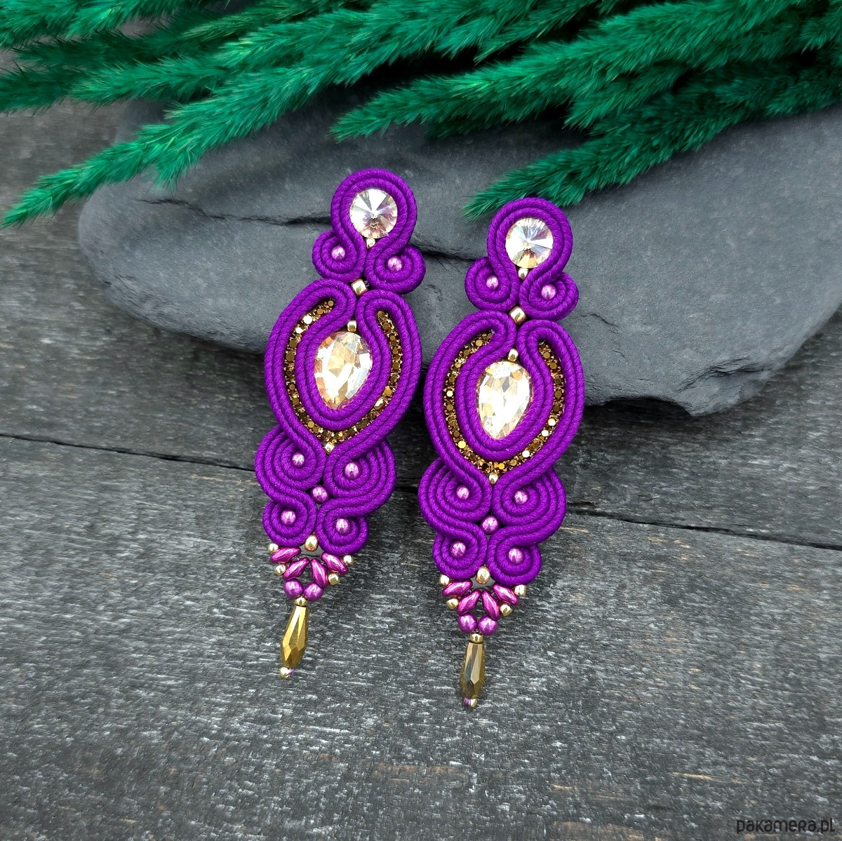 Kolczyki sutasz fioletowe ze złotem Ismara wieczorowe z kryształkami