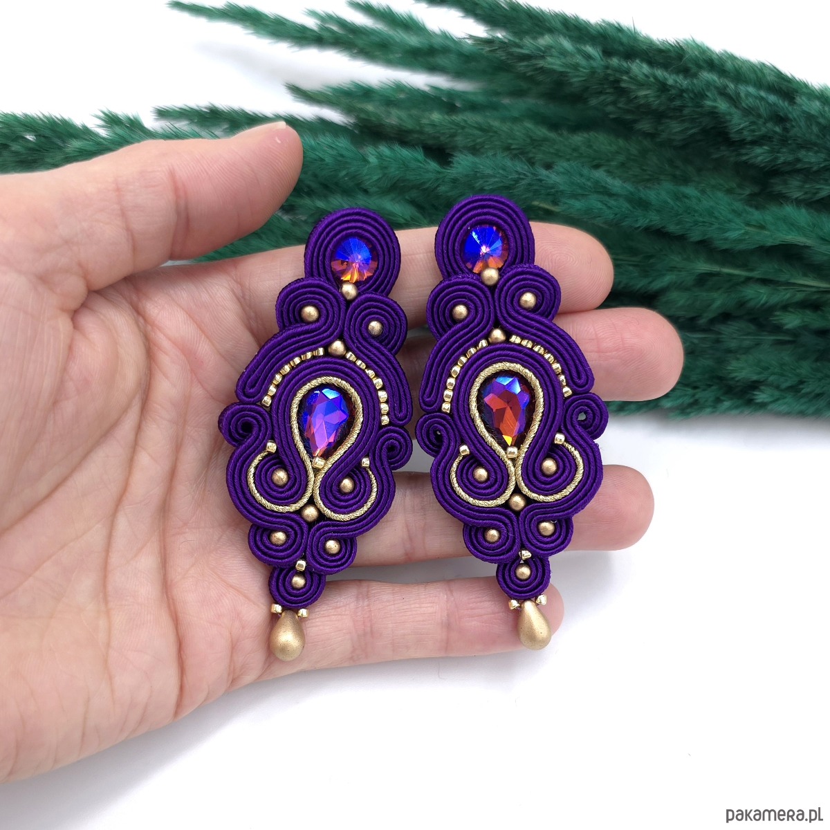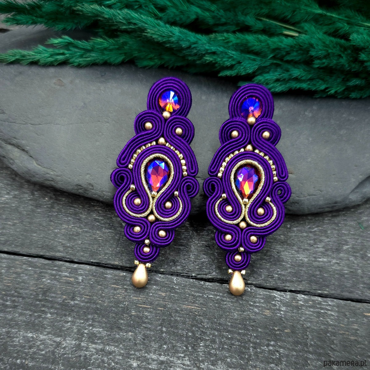 Kolczyki sutasz w odcieniu głębokiego fioletu urzekają elegancją i misternie ułożonymi sznureczkami.