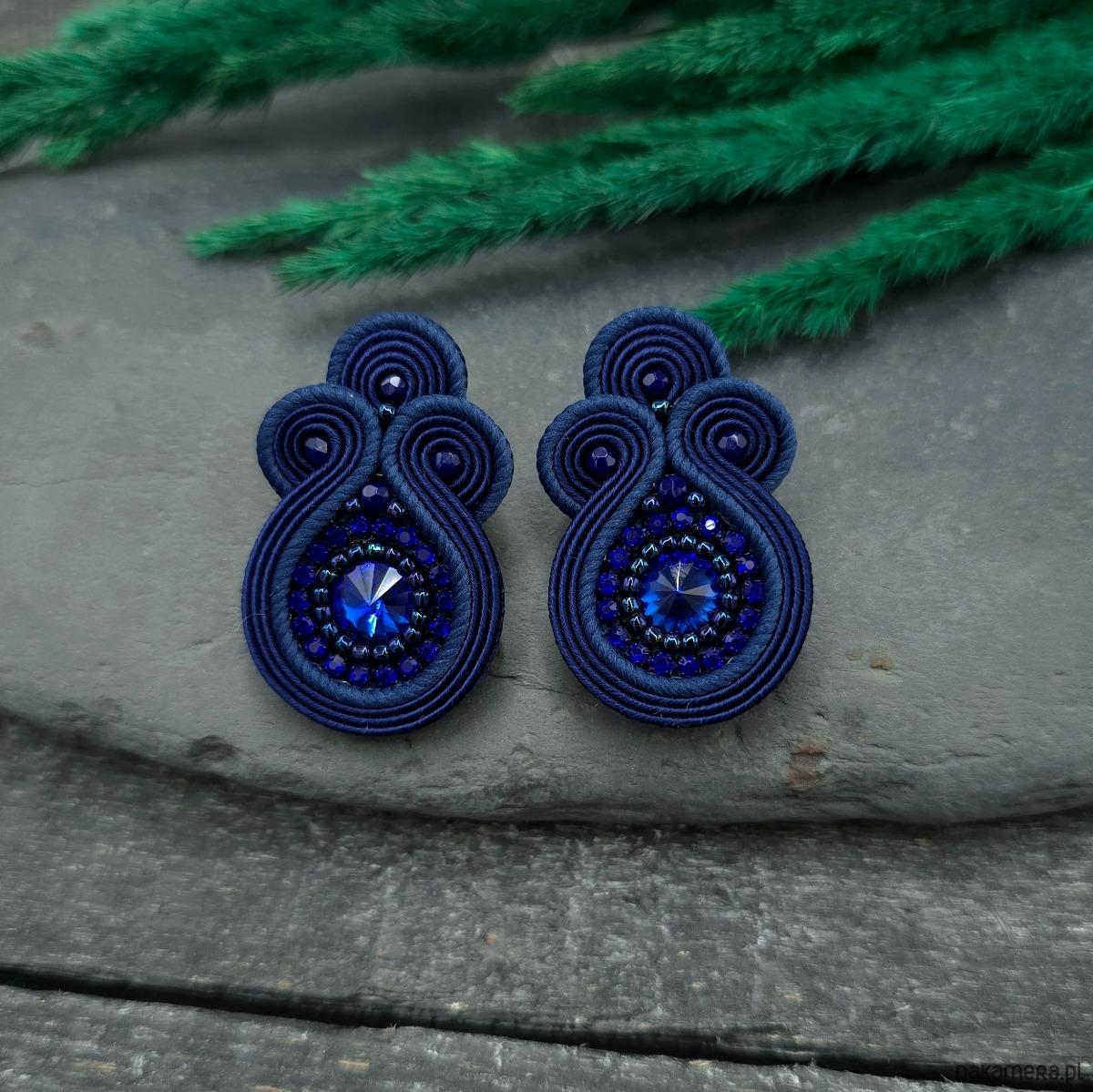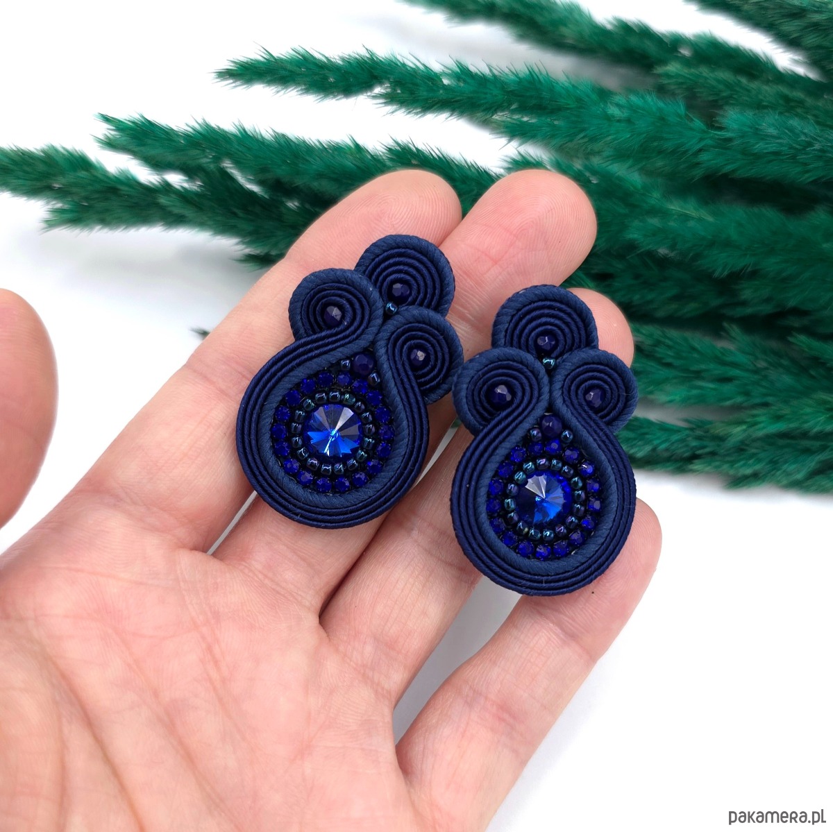 Kolczyki sutasz granatowe sztyfty małe "Gracia" z kryształkami