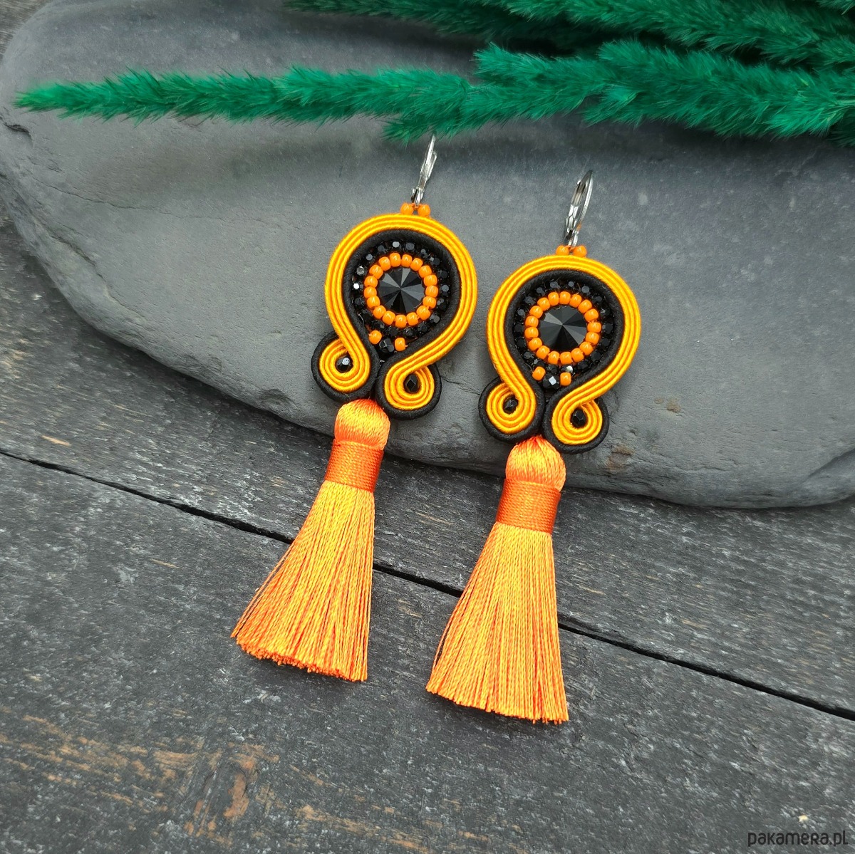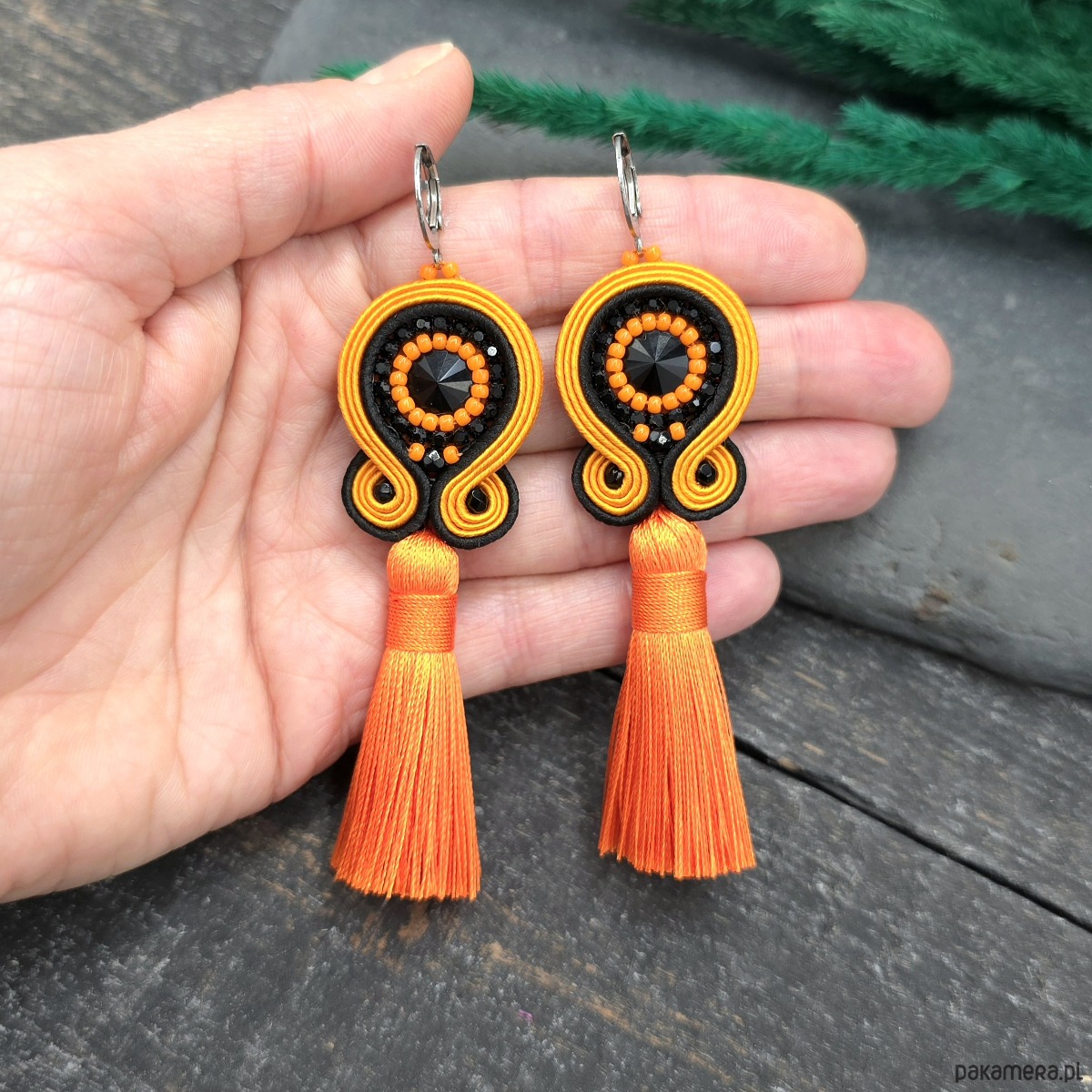 Kolczyki sutasz kolorowe pomarańczowo czarne wiosenne Cleo z chwostem
