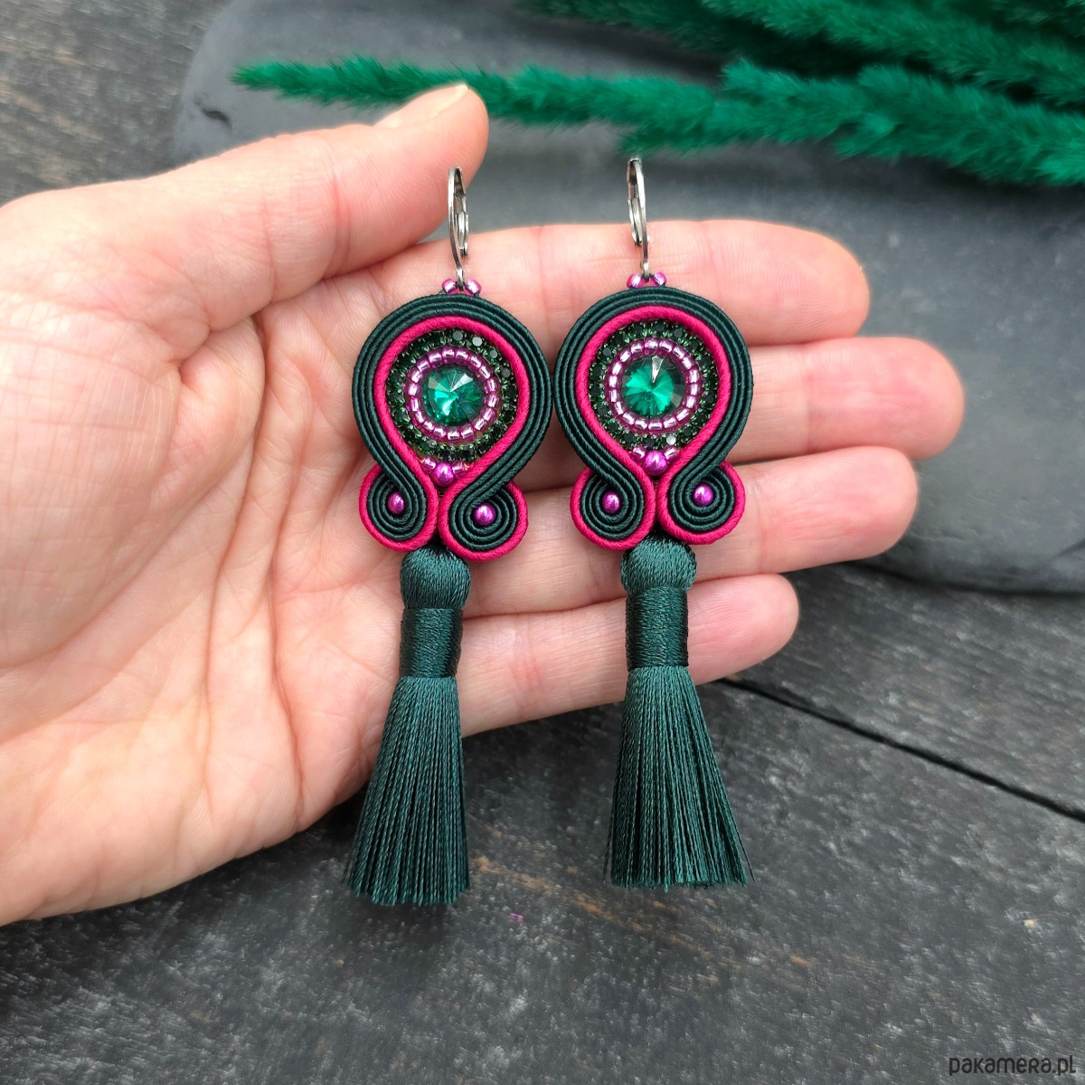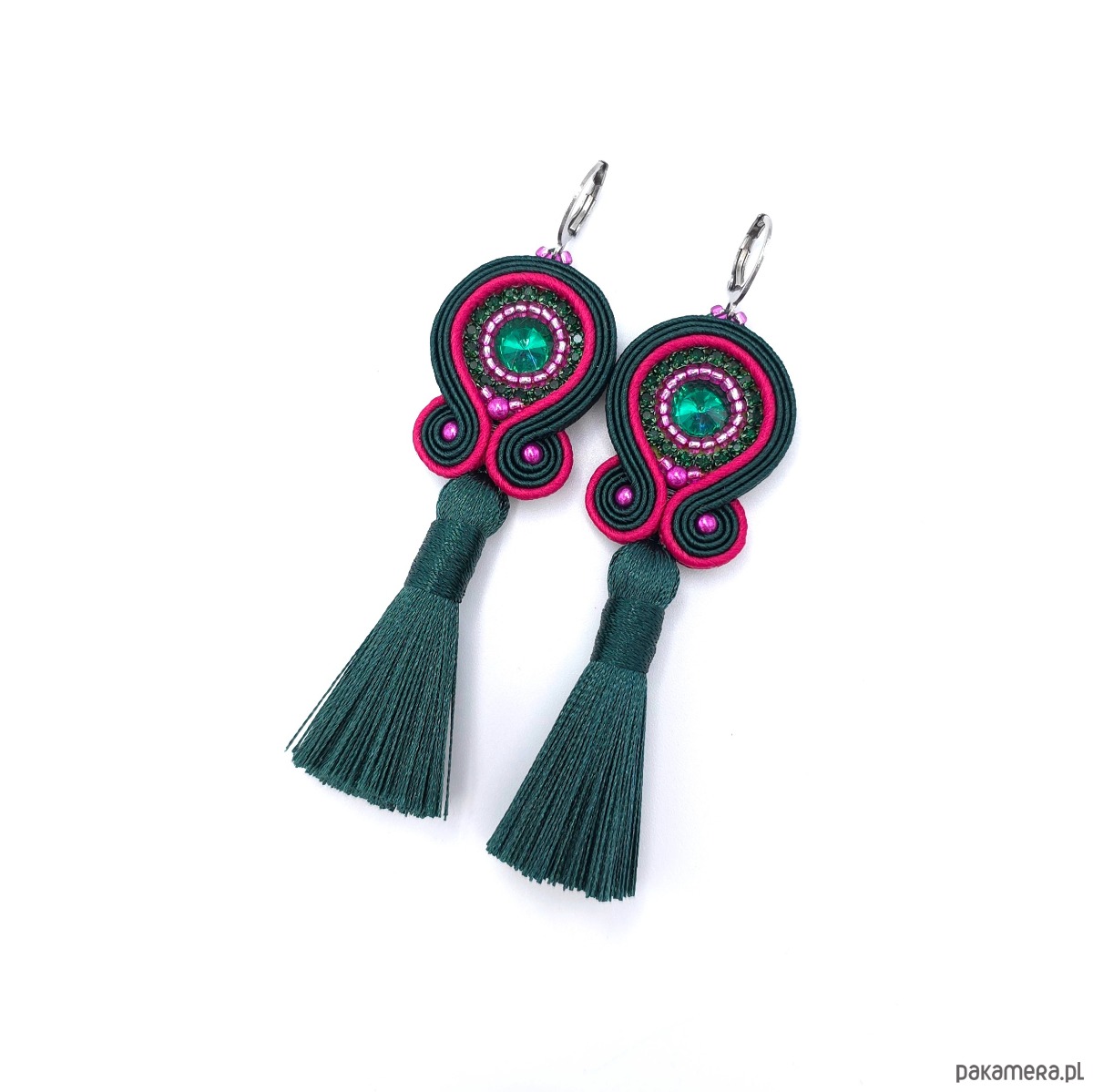 kaboszony kryształki, taśma z cyrkoniami, koraliki Toho, koraliki Round Beads, koraliki SuperDuo, wiskozowe chwosty, greckie i czeskie sznurki sutasz, bigle ze stali chirurgicznej.