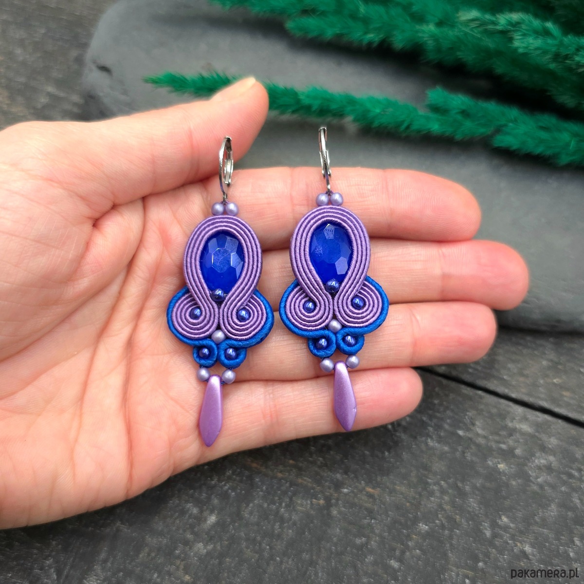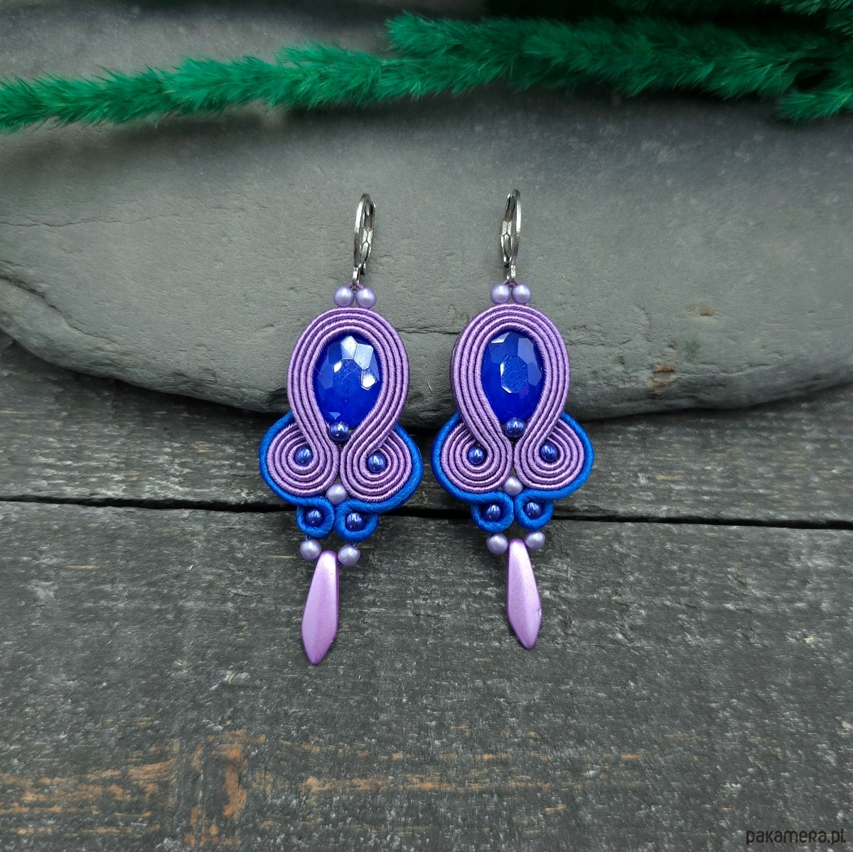 Kolczyki sutasz liliowo chabrowe wiosenne kolorowe lekkie Elisa