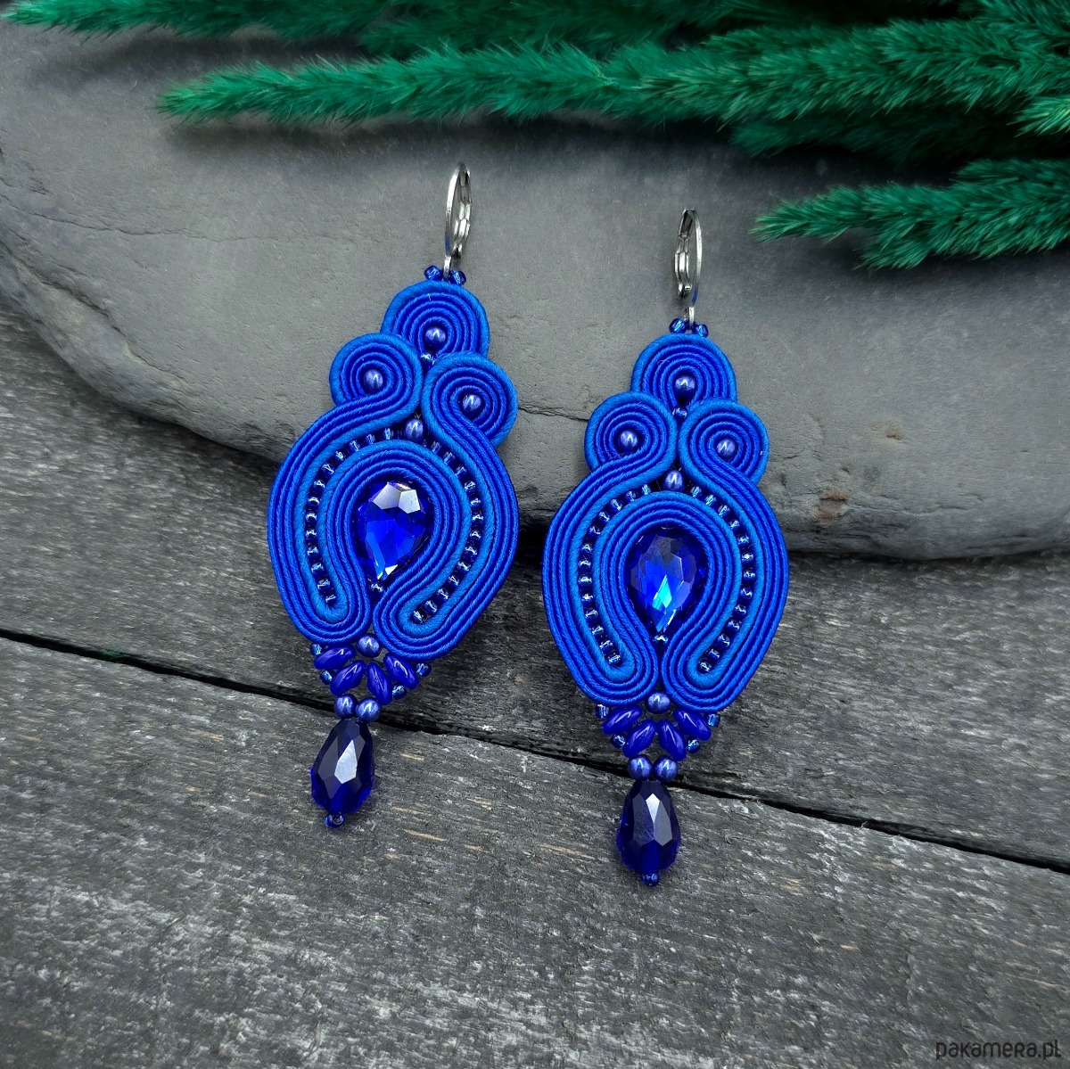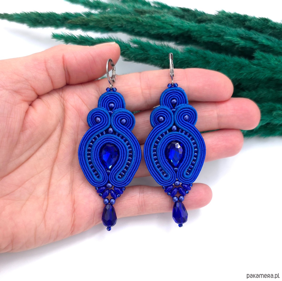 Kolczyki sutasz niebieskie chabrowe Verra wieczorowe z kryształkami