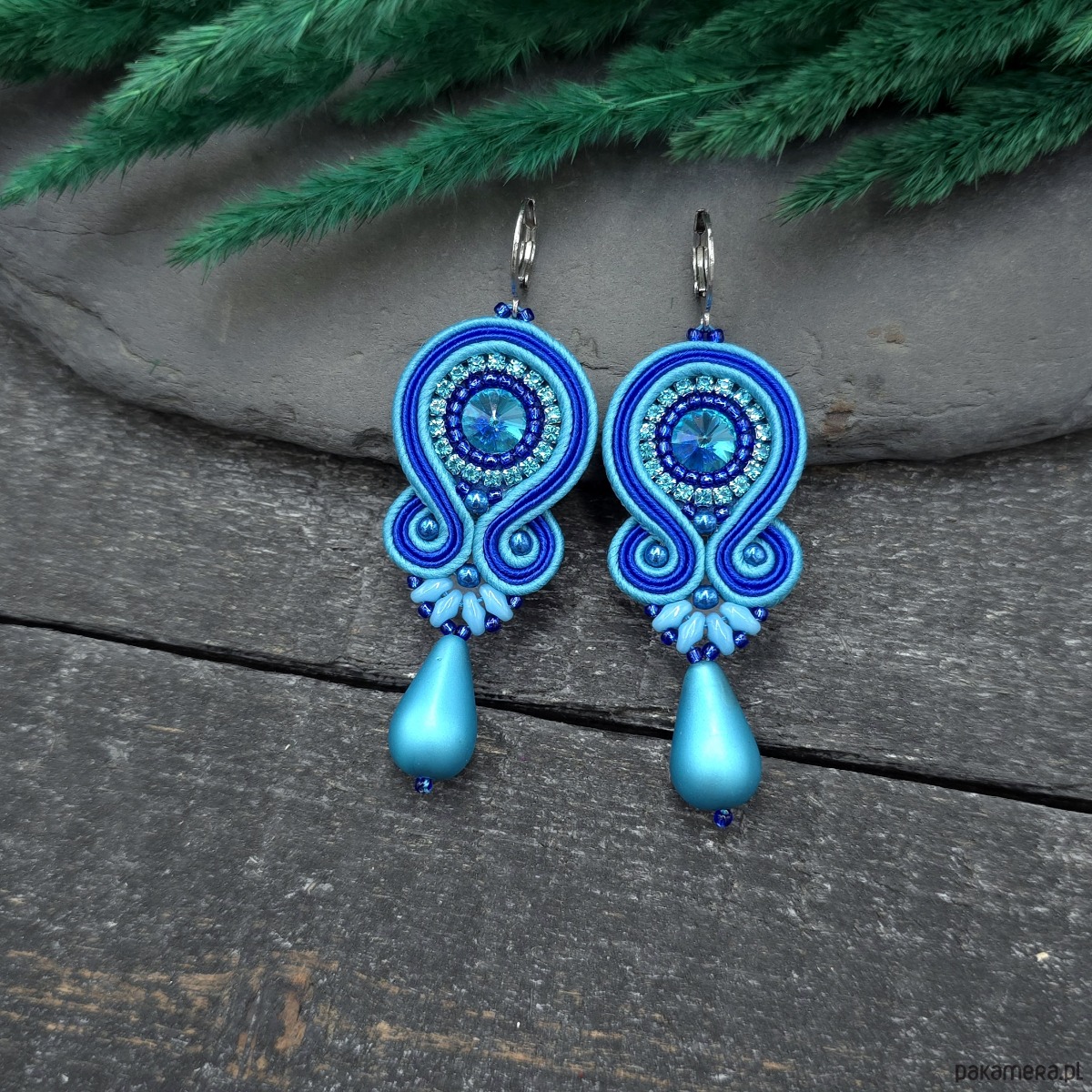 kaboszony kryształki, taśma z cyrkoniami, koraliki Toho, koraliki Round Beads, koraliki SuperDuo, duże szklane łezki DropBeads, greckie i czeskie sznurki sutasz, bigle ze stali chirurgicznej.