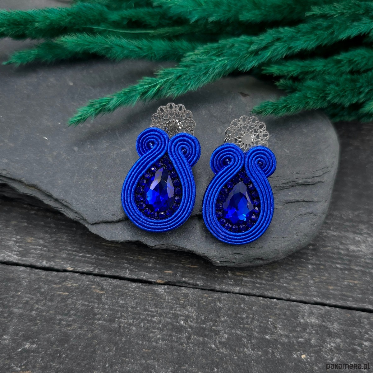 kaboszony kryształki, taśma z cyrkoniami, koraliki Toho, czeskie sznurki sutasz, sztyfty kwiatki ze stali chirurgicznej.