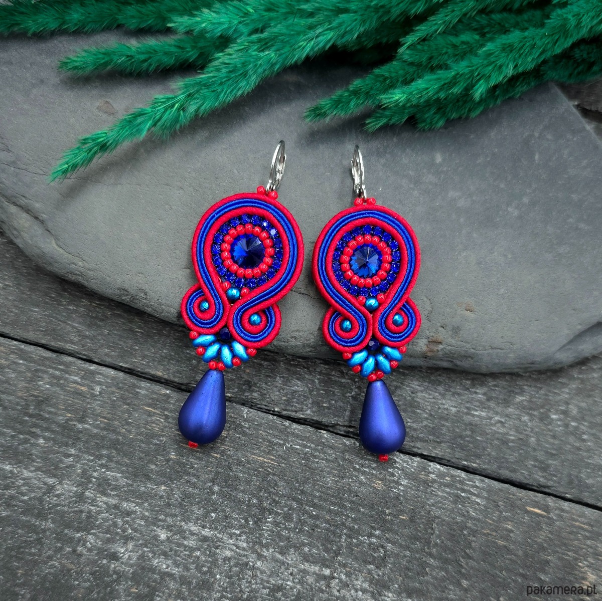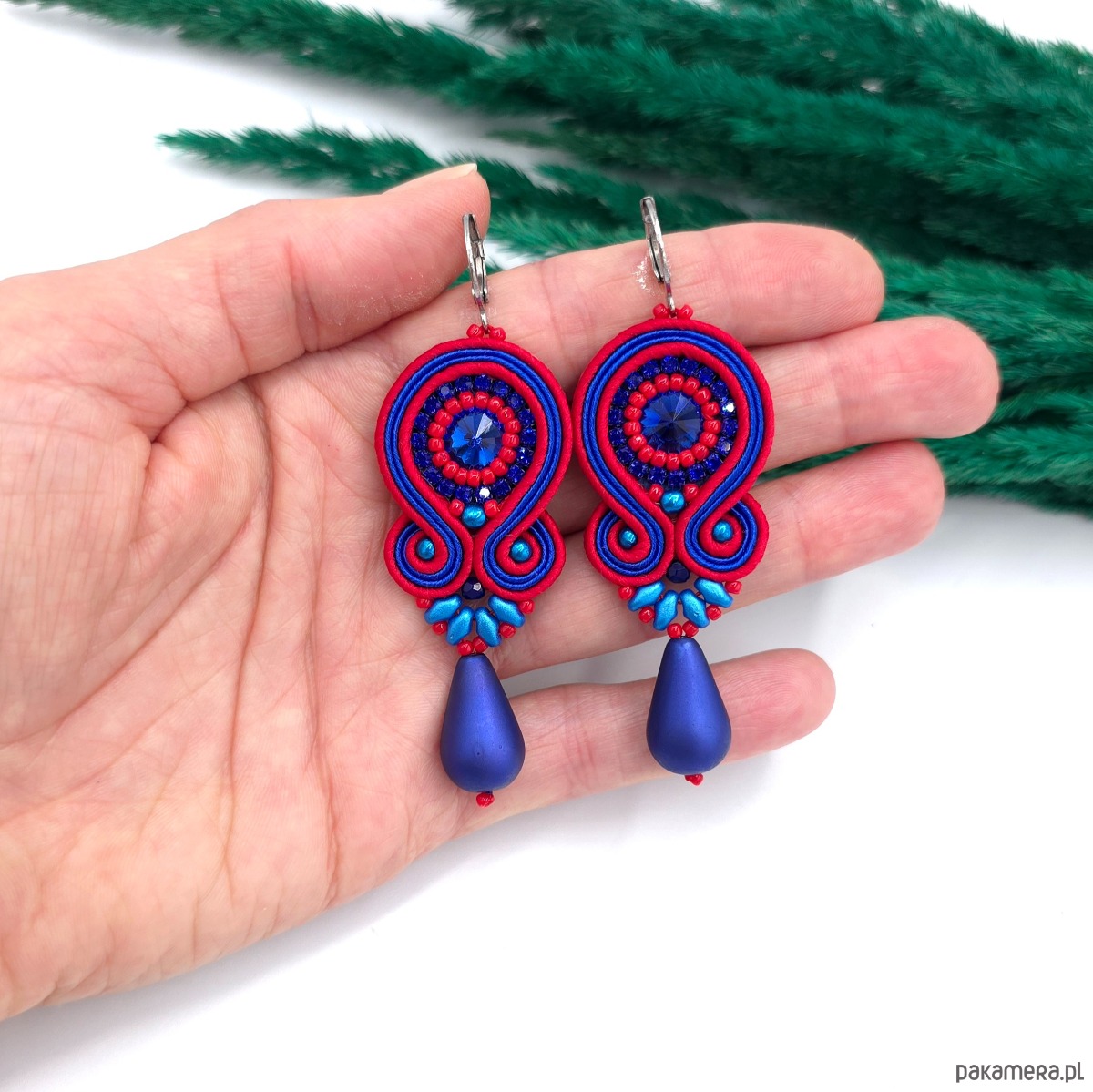 kaboszony kryształki, taśma z cyrkoniami, koraliki Toho, koraliki Fire Polish, koraliki SuperDuo, duże szklane łezki DropBeads, greckie i czeskie sznurki sutasz, bigle ze stali chirurgicznej.