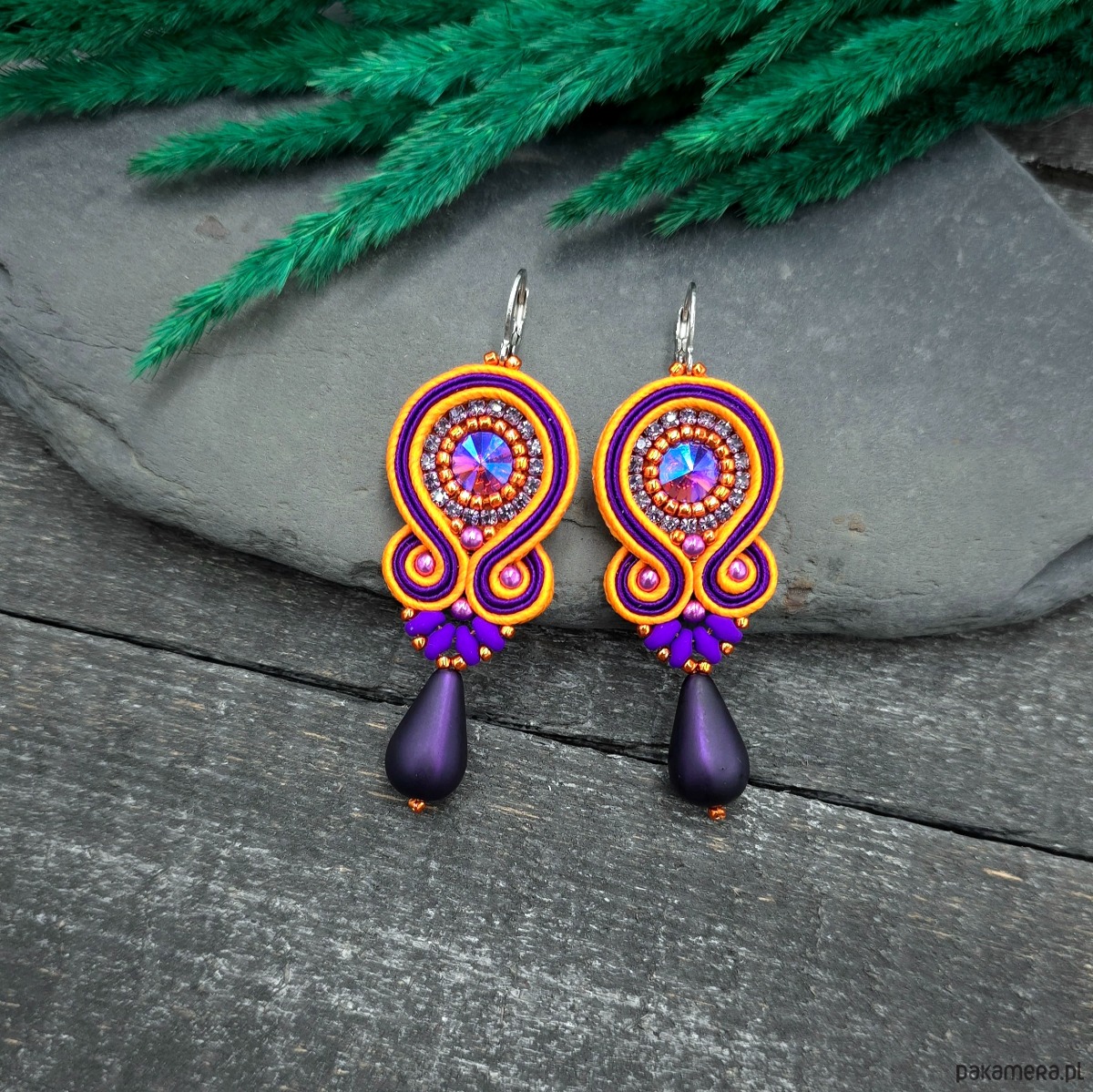 Kolczyki sutasz pomarańczowo fioletowe kolorowe Cleo z dużą łezką