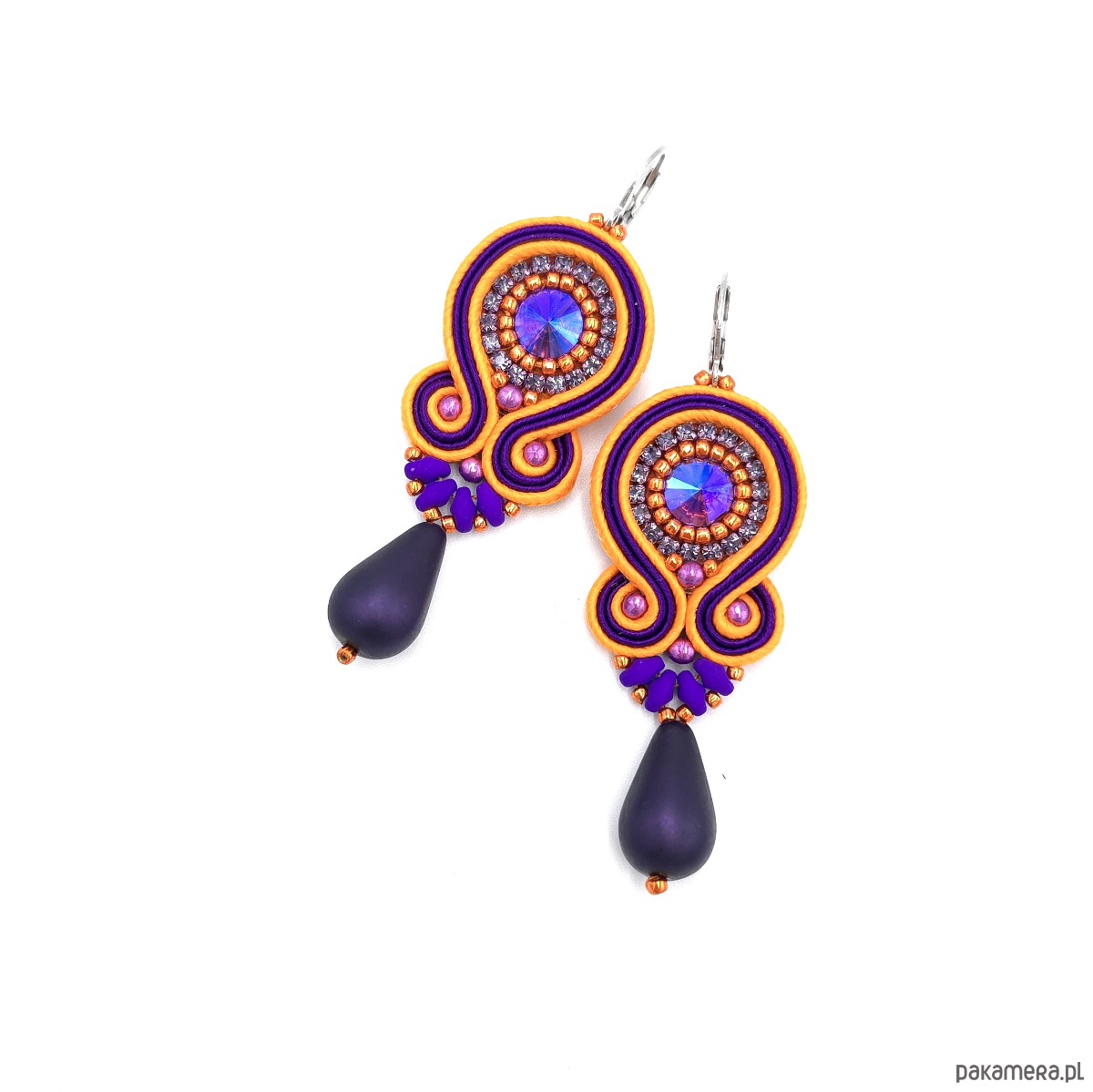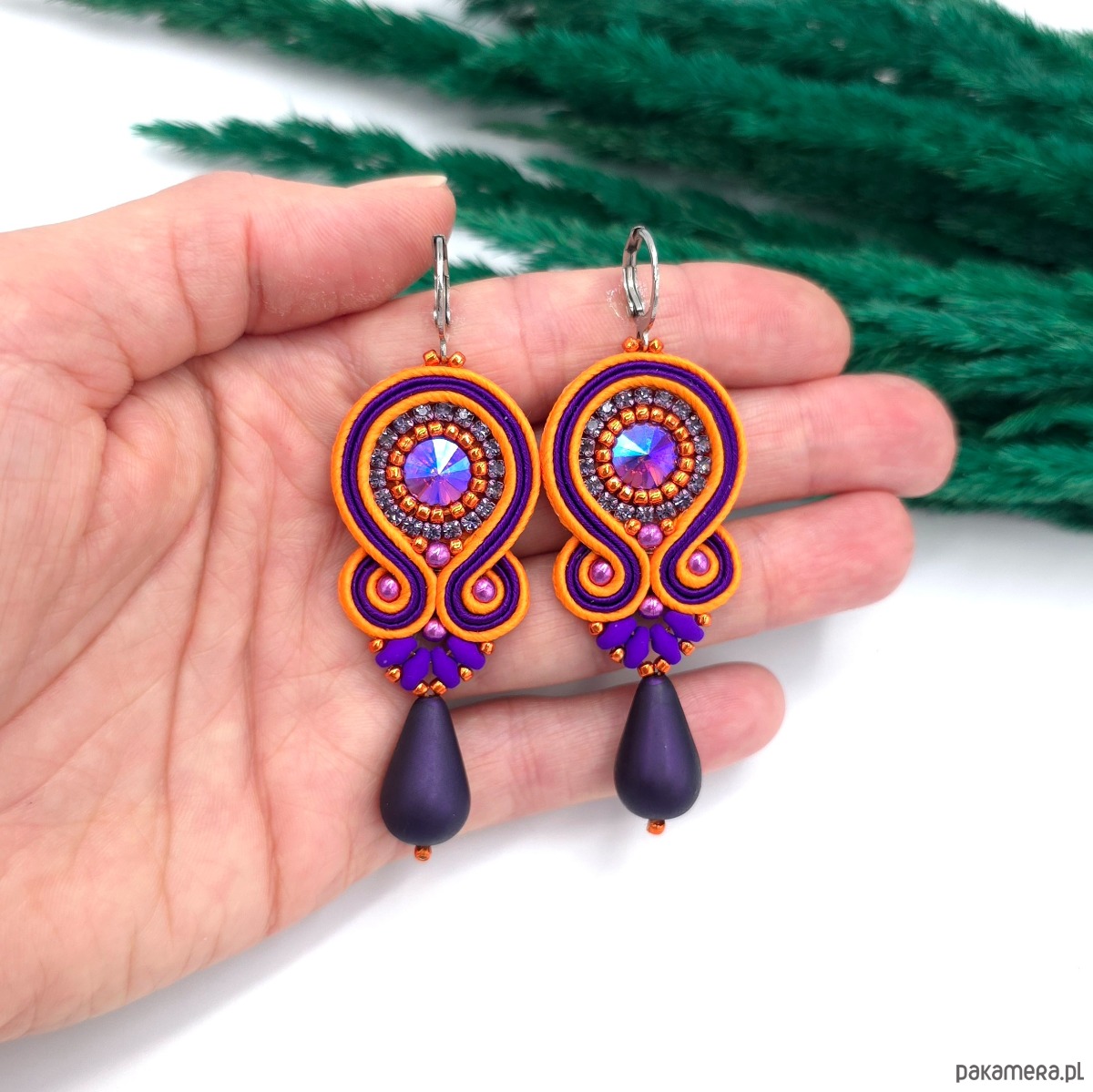 Kolczyki sutasz pomarańczowo fioletowe kolorowe Cleo z dużą łezką