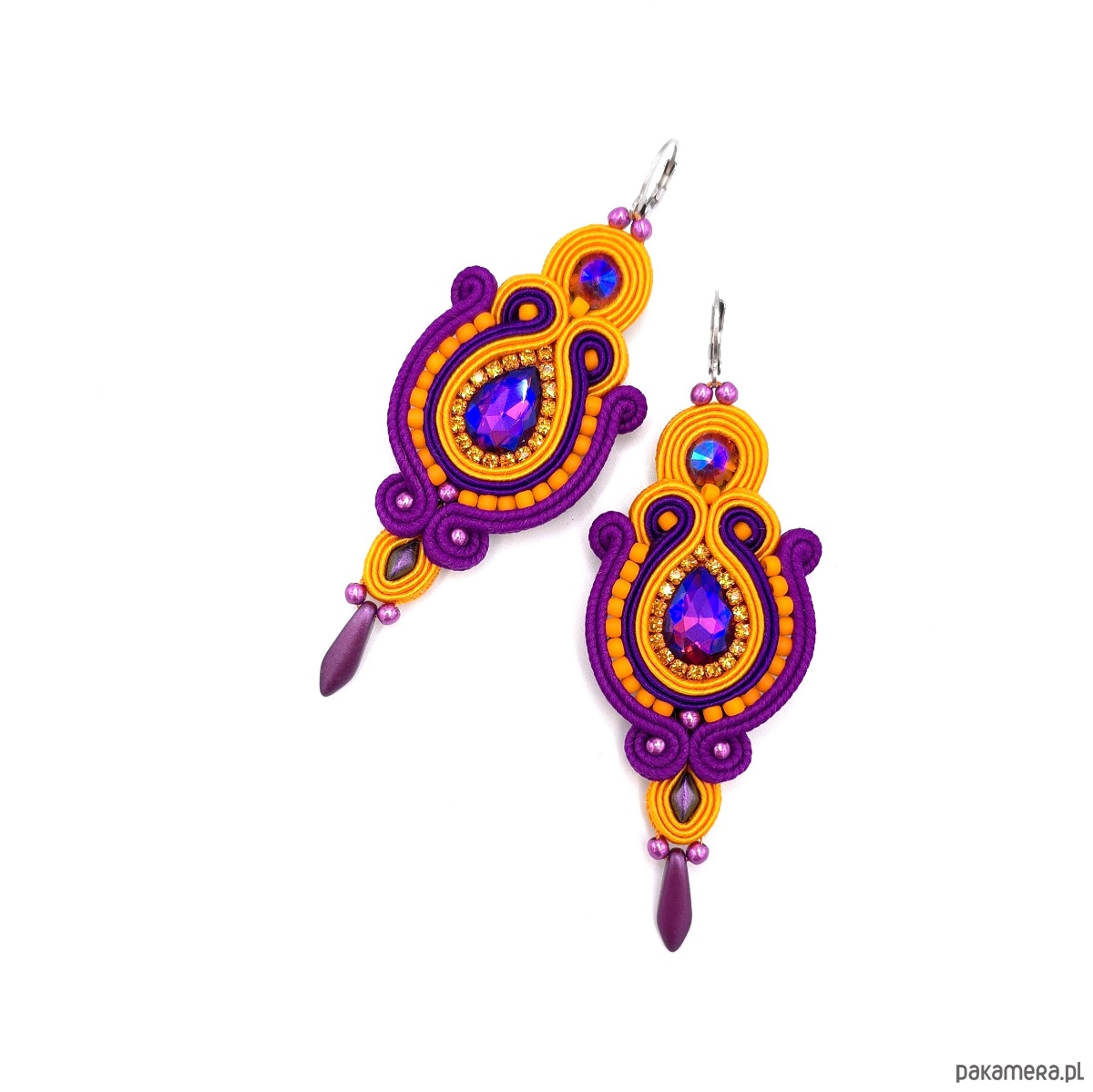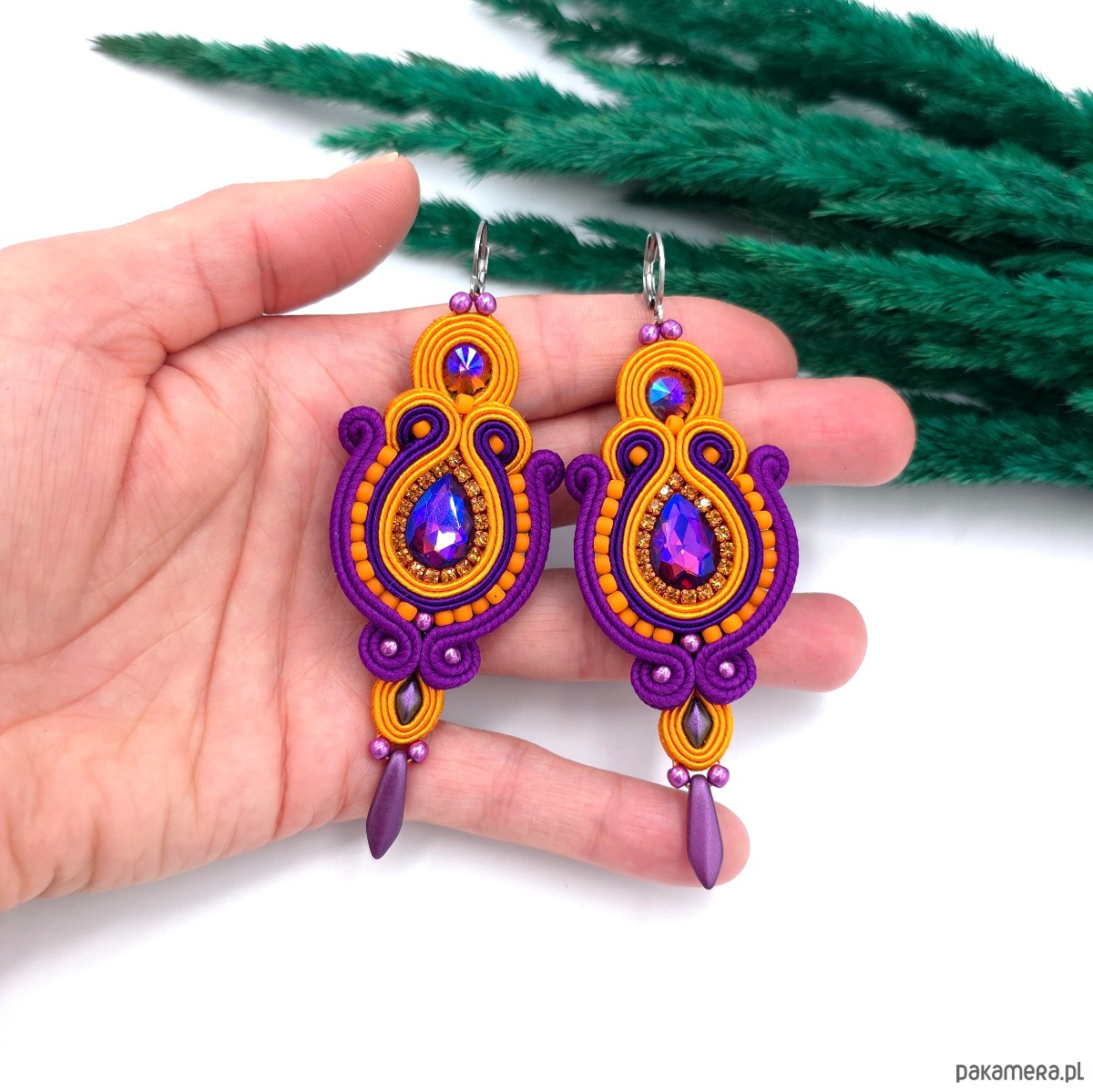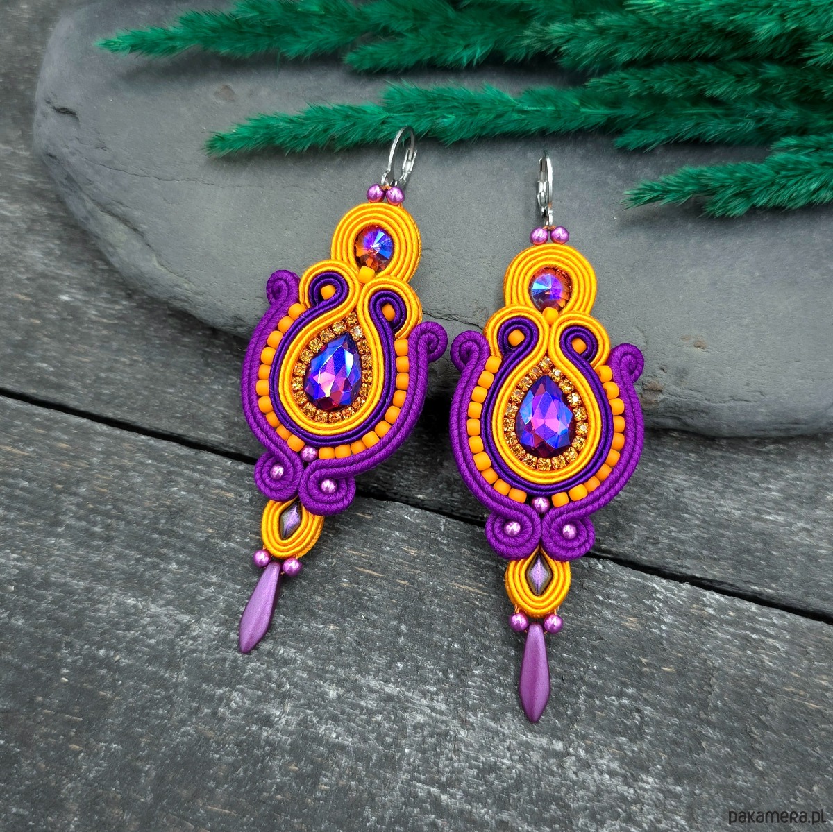 Kolczyki sutasz pomarańczowo fioletowe kolorowe Margo energetyczne