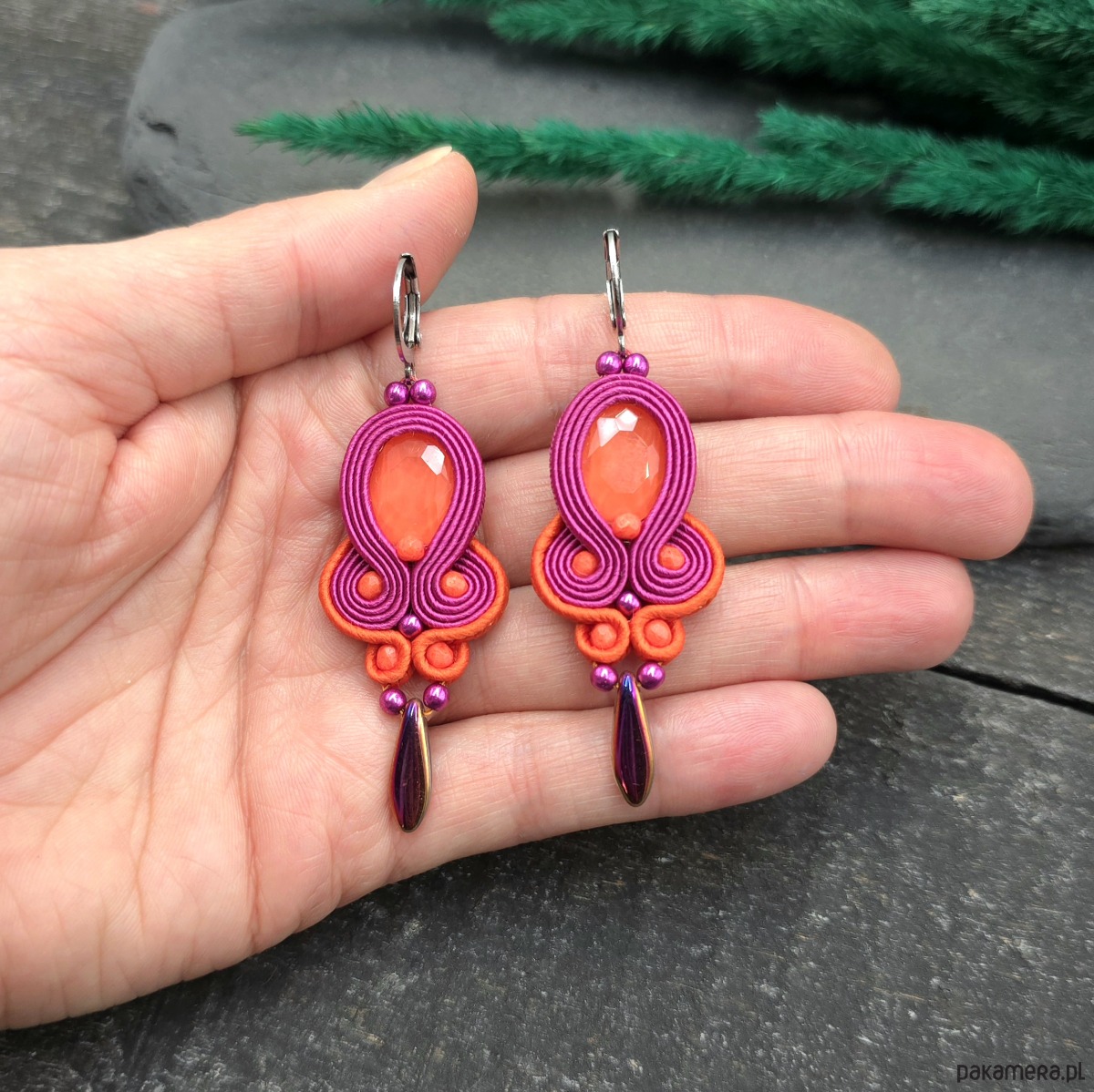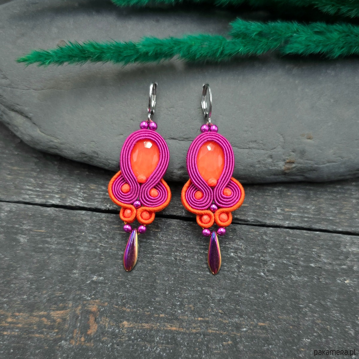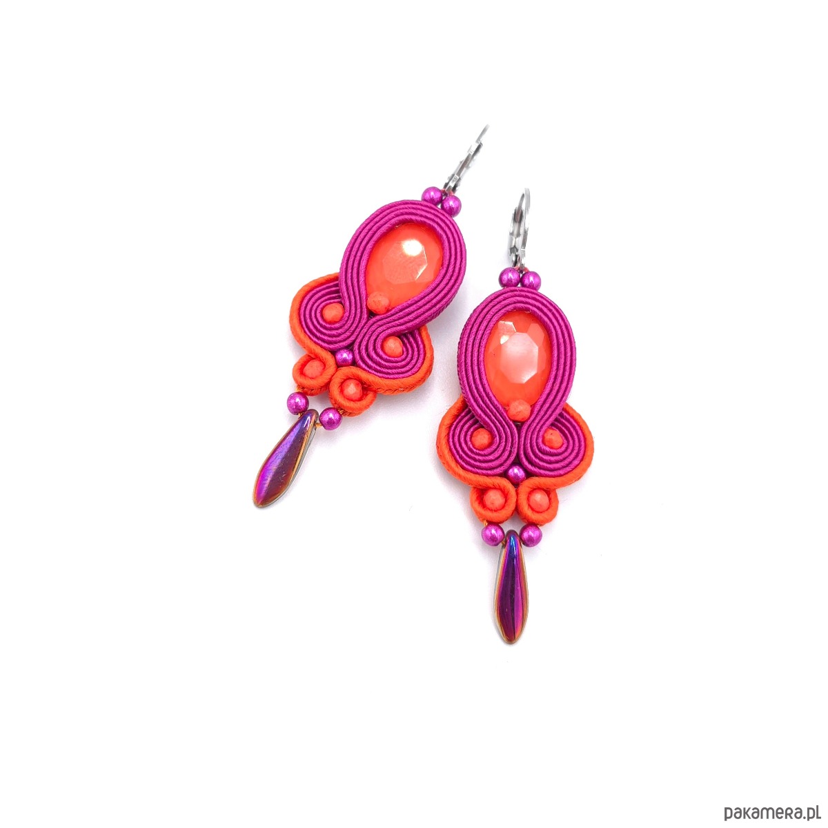 Kolczyki sutasz pomarańczowo różowe wiosenne kolorowe lekkie Elisa