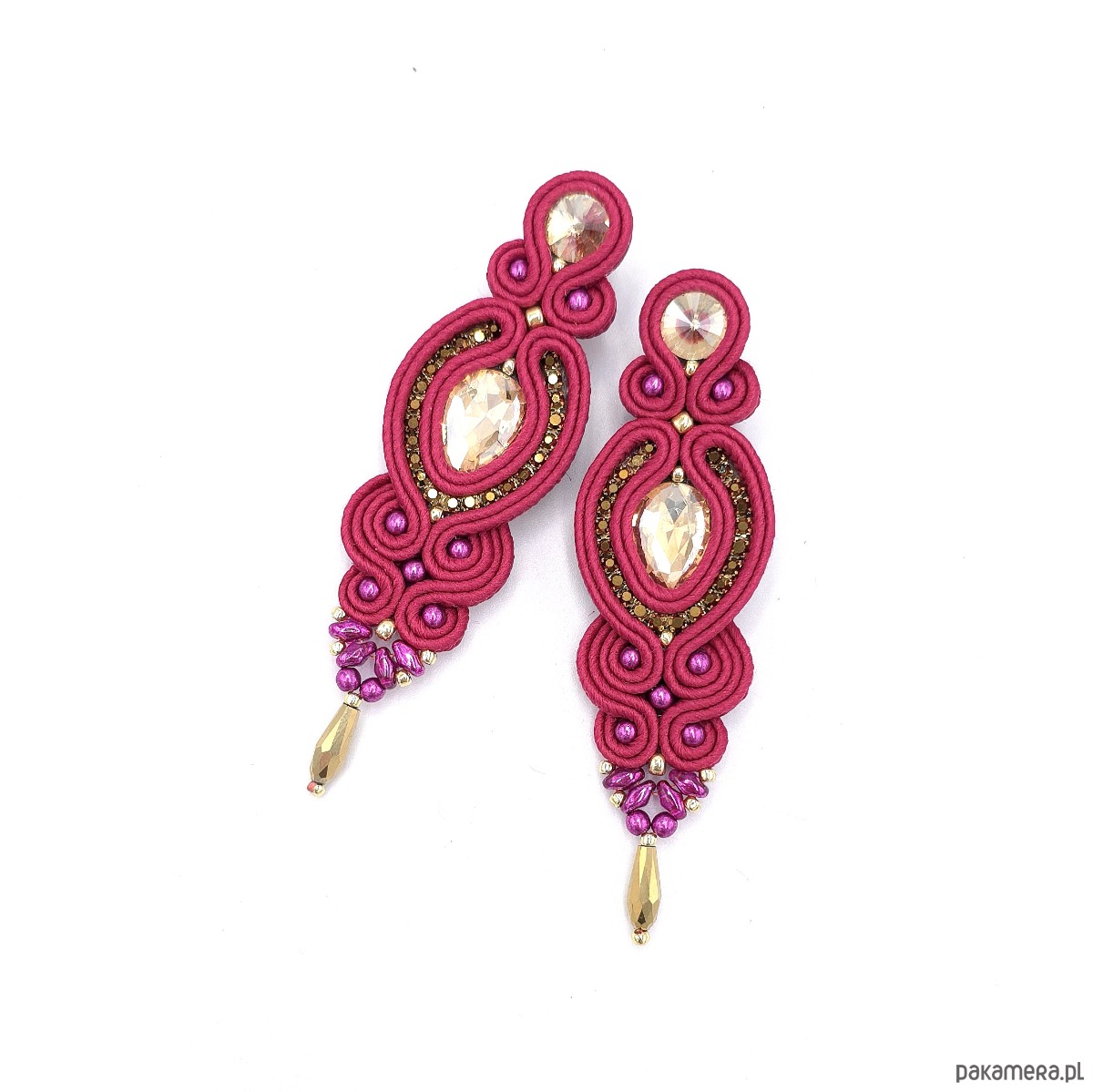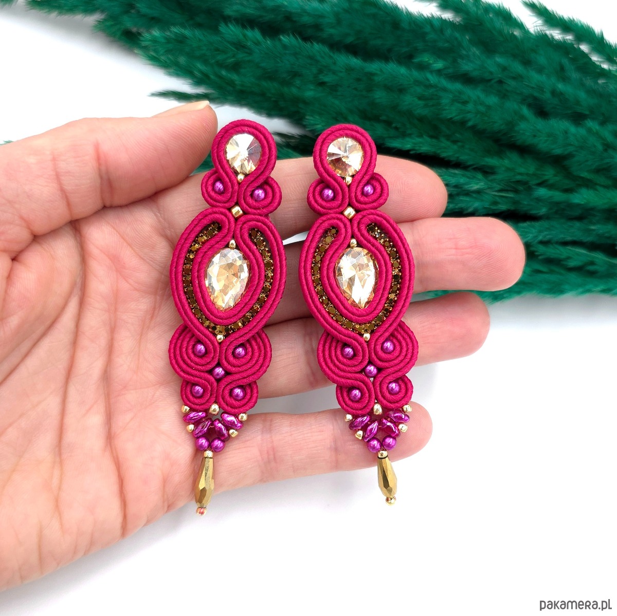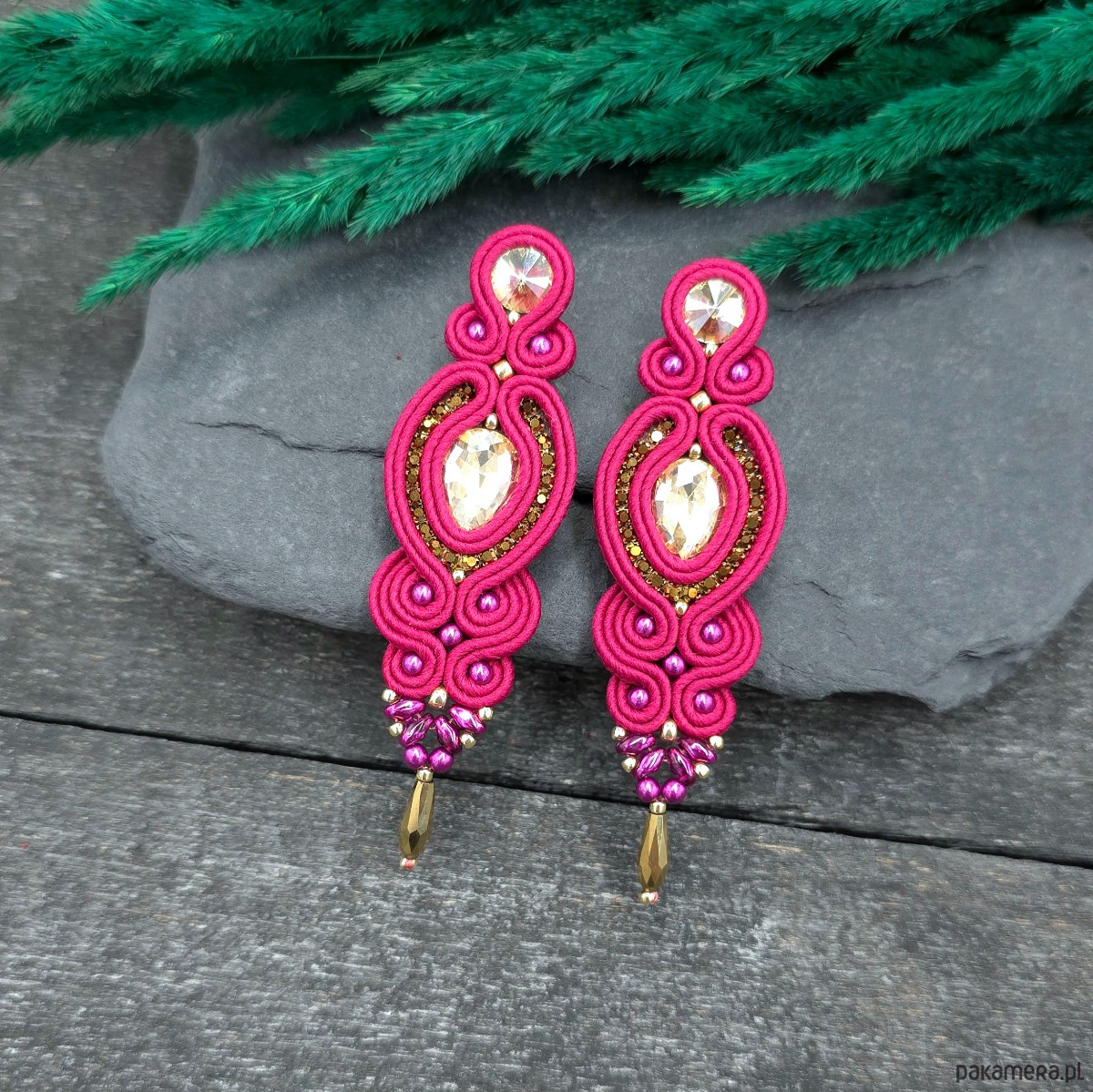 Kolczyki sutasz różowe ze złotem Ismara wieczorowe z kryształkami