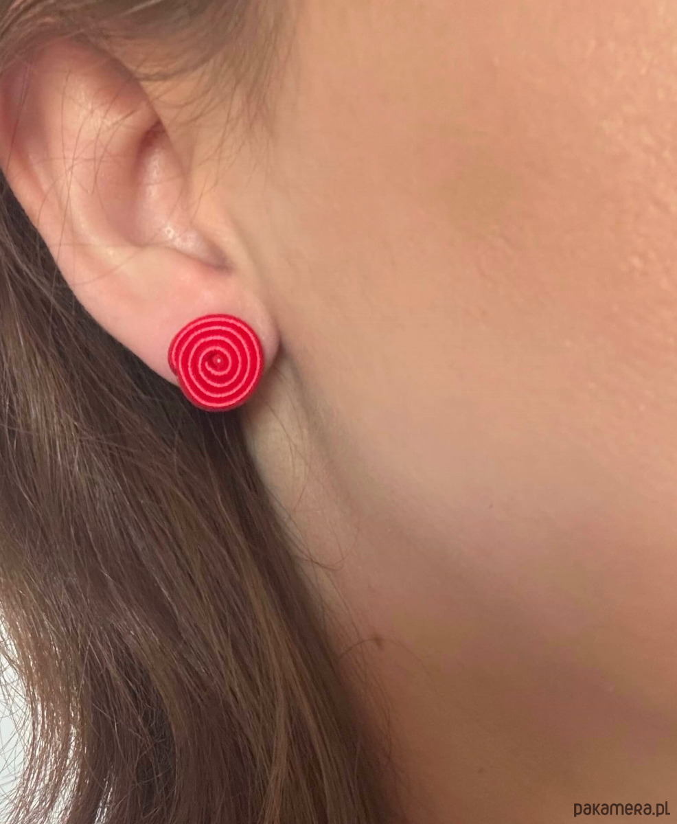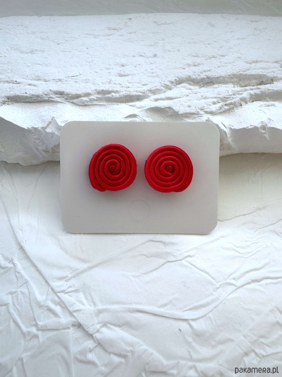 Kolczyki sutasz w kształcie ślimaczków w intensywnym czerwonym kolorze to minimalistyczny, a zarazem wyrazisty akcent do każdej stylizacji.
