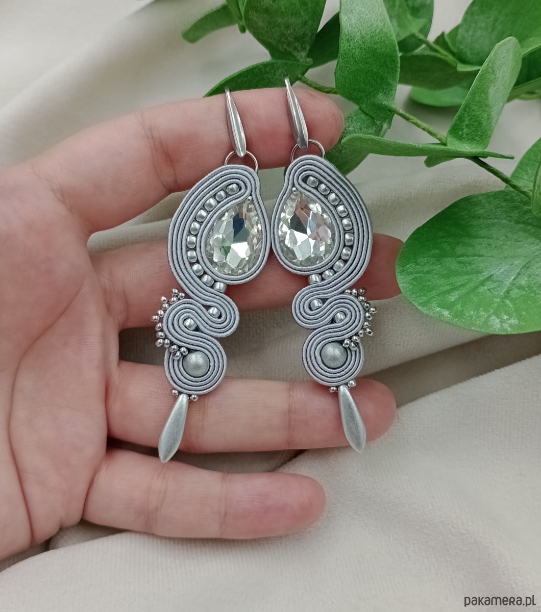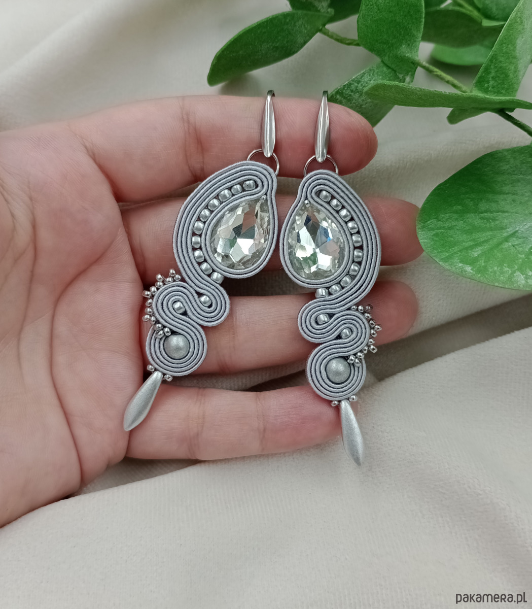 Kolczyki sutasz, srebrne kolczyki sutasz, szare kolczyki