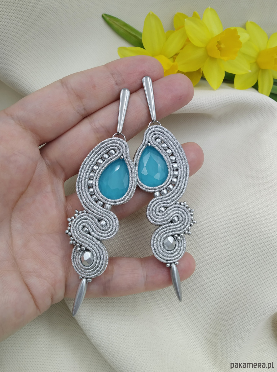 Kolczyki sutasz, srebrne kolczyki sutasz, turkusowe kolczyki
