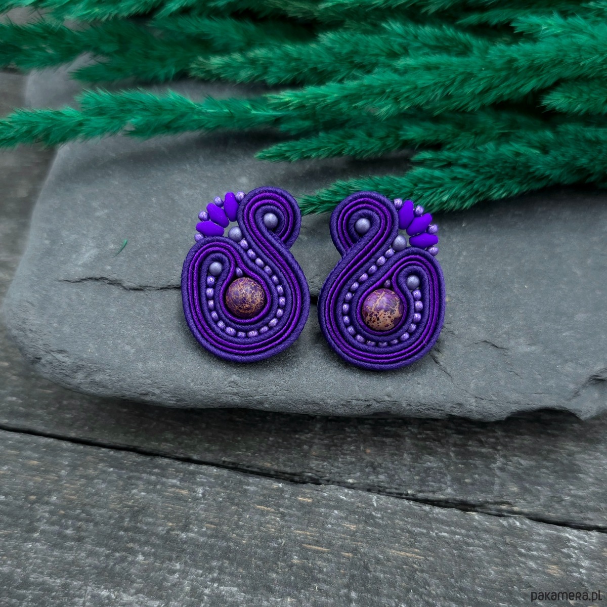 Kolczyki sutasz sztyfty fioletowe Mila małe z kulkami jaspisu