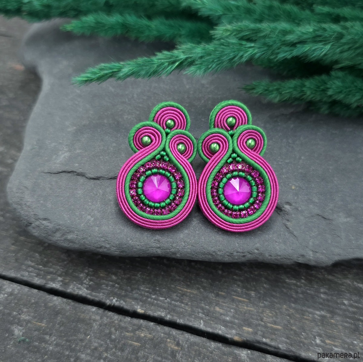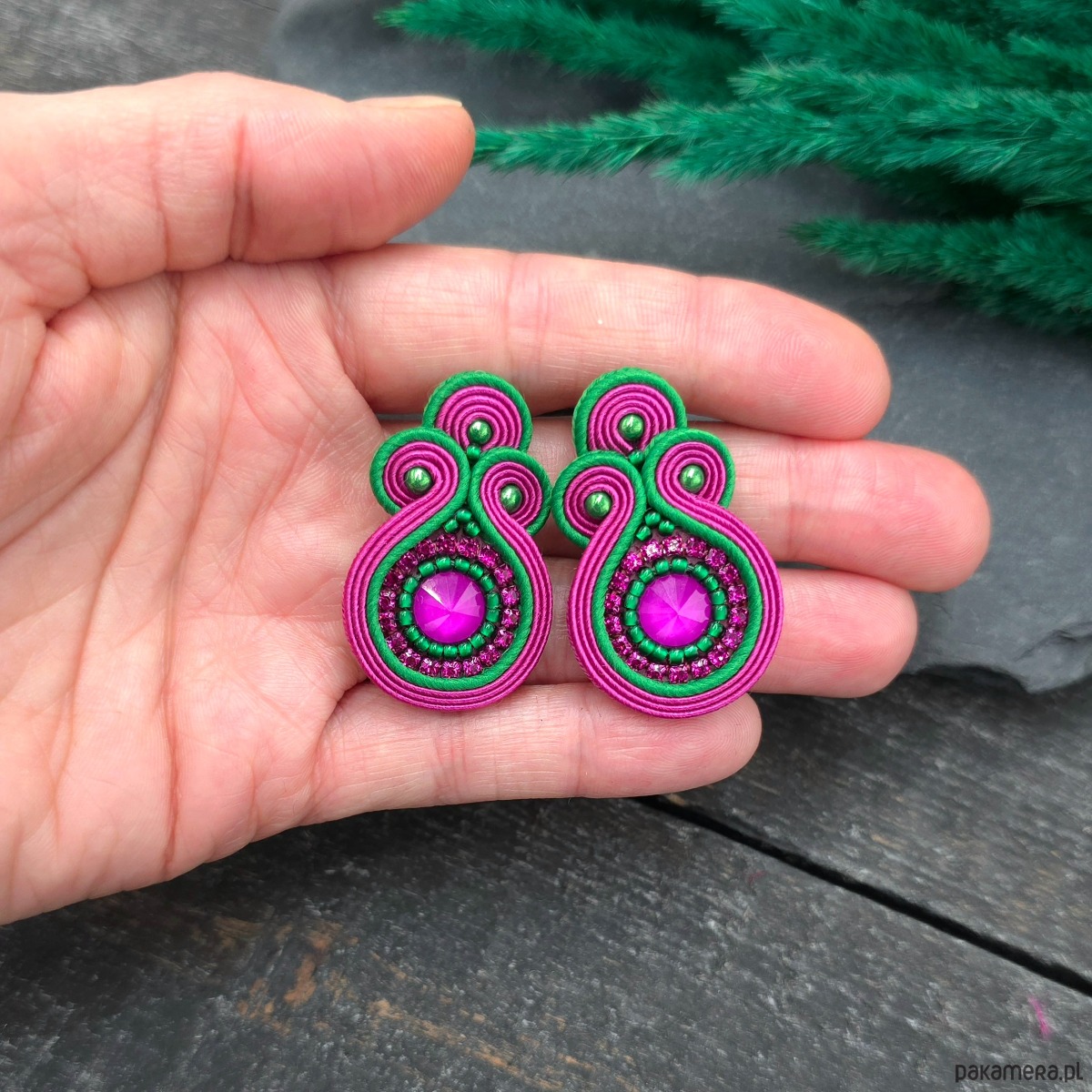 Kolczyki sutasz sztyfty małe różowo zielone z kryształkami Gracia
