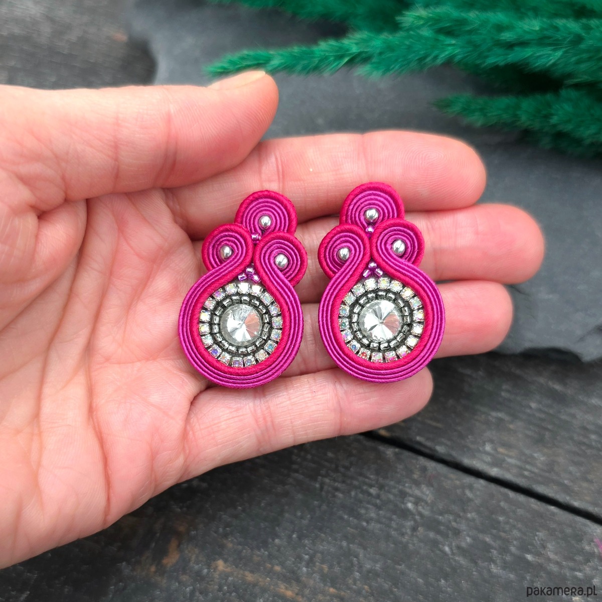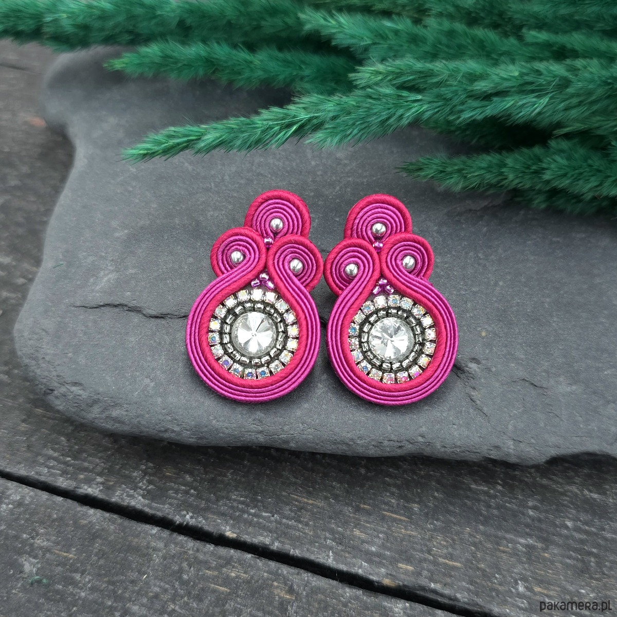 Kolczyki sutasz sztyfty małe srebrno różowe z kryształkami Gracia