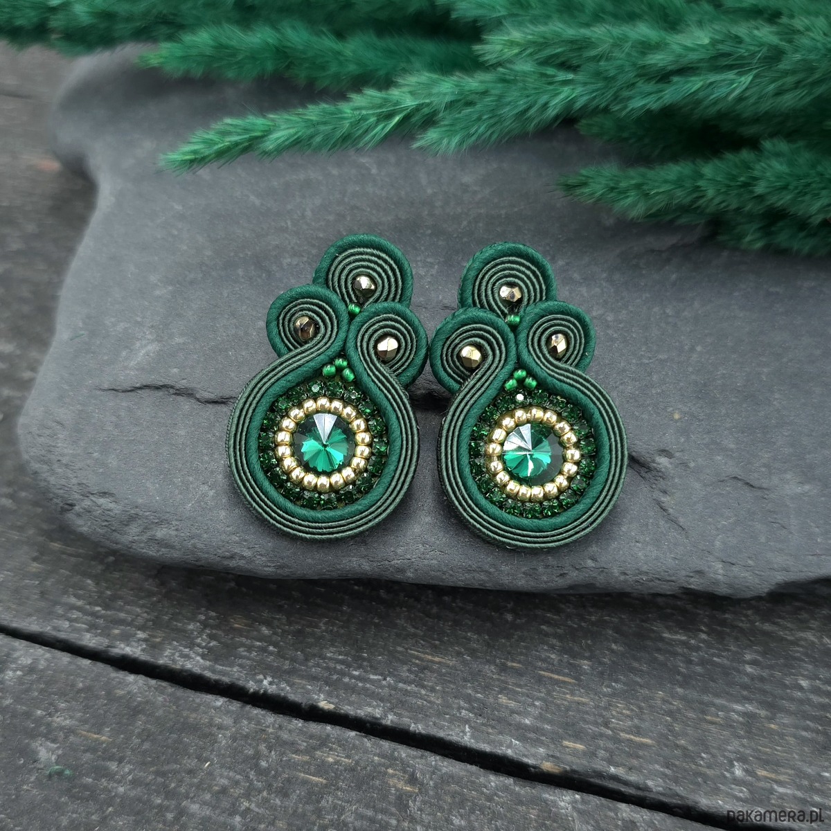 Kolczyki sutasz sztyfty małe zielone z kryształkami Gracia