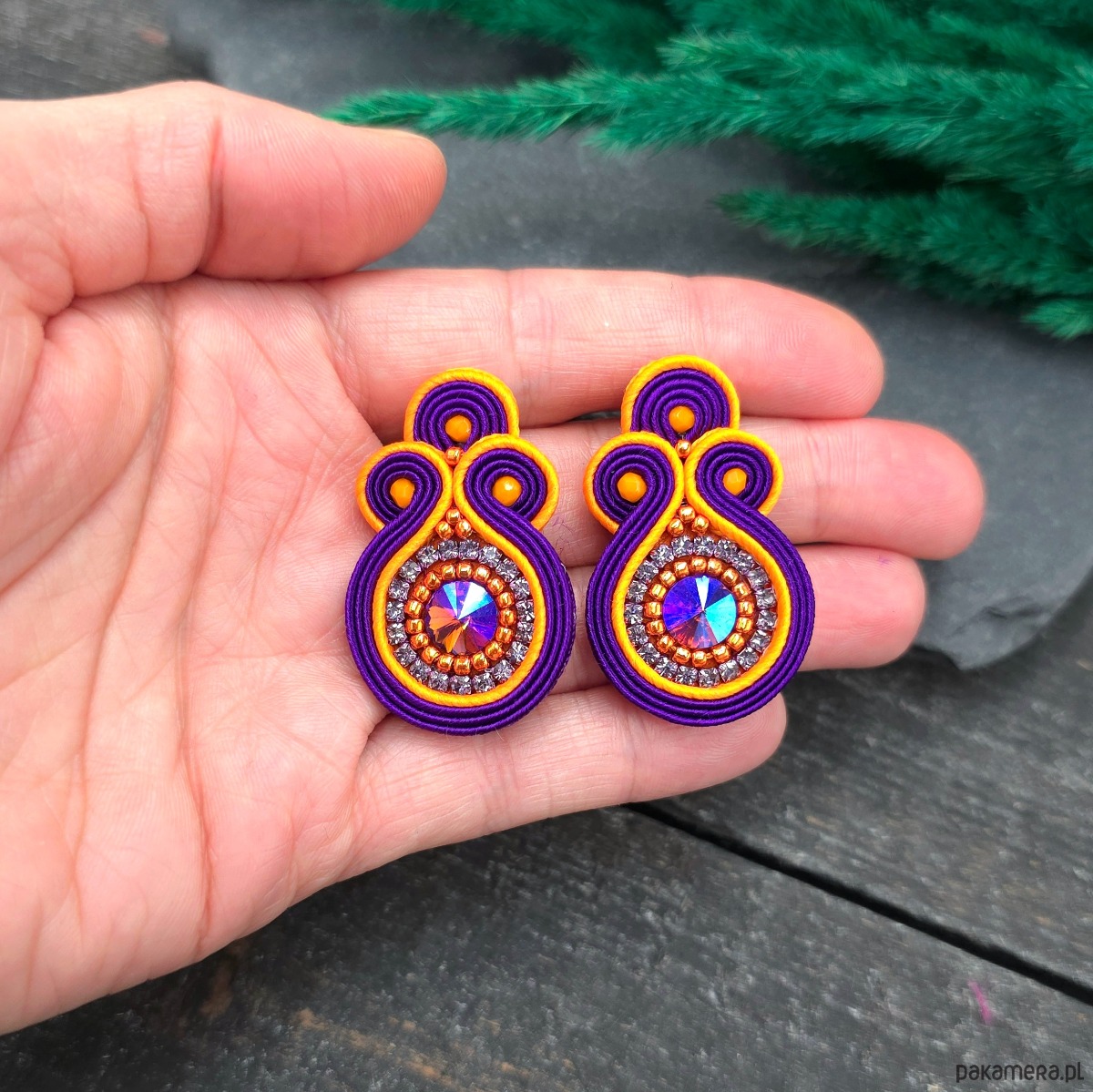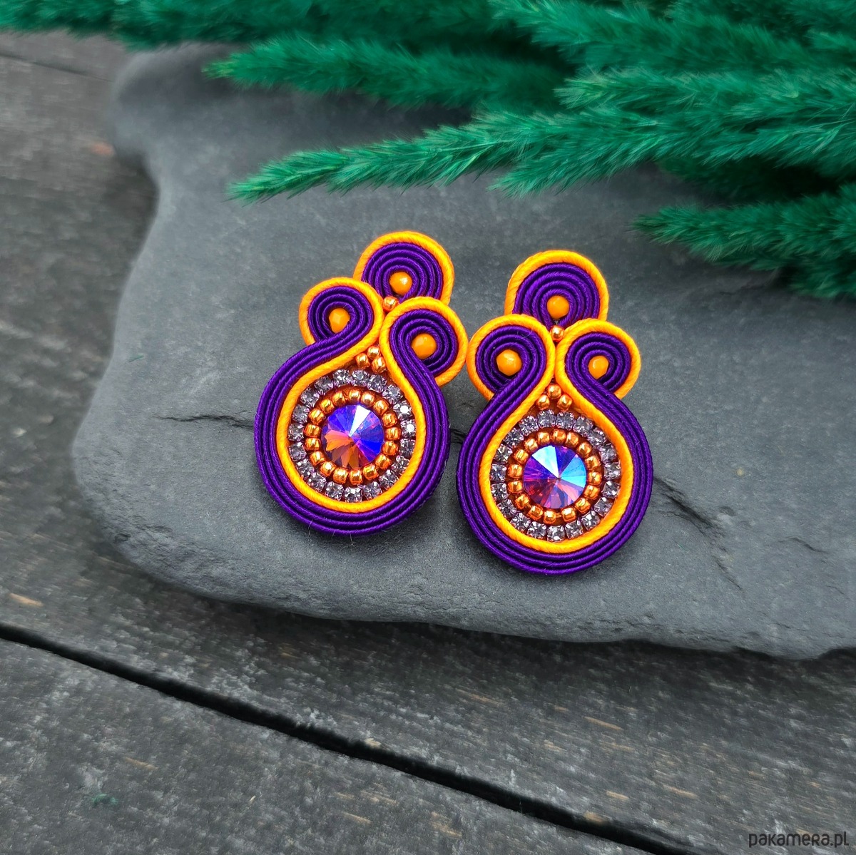 Kolczyki sutasz sztyfty pomarańczowo fioletowe z kryształkami Gracia