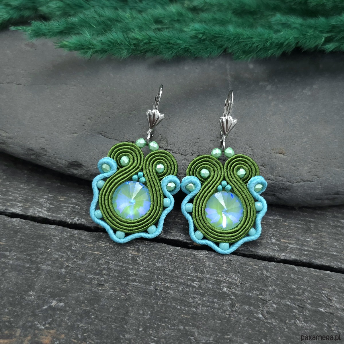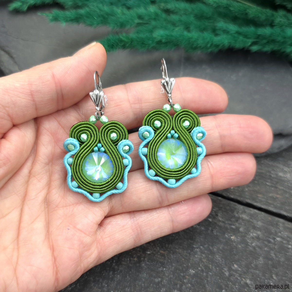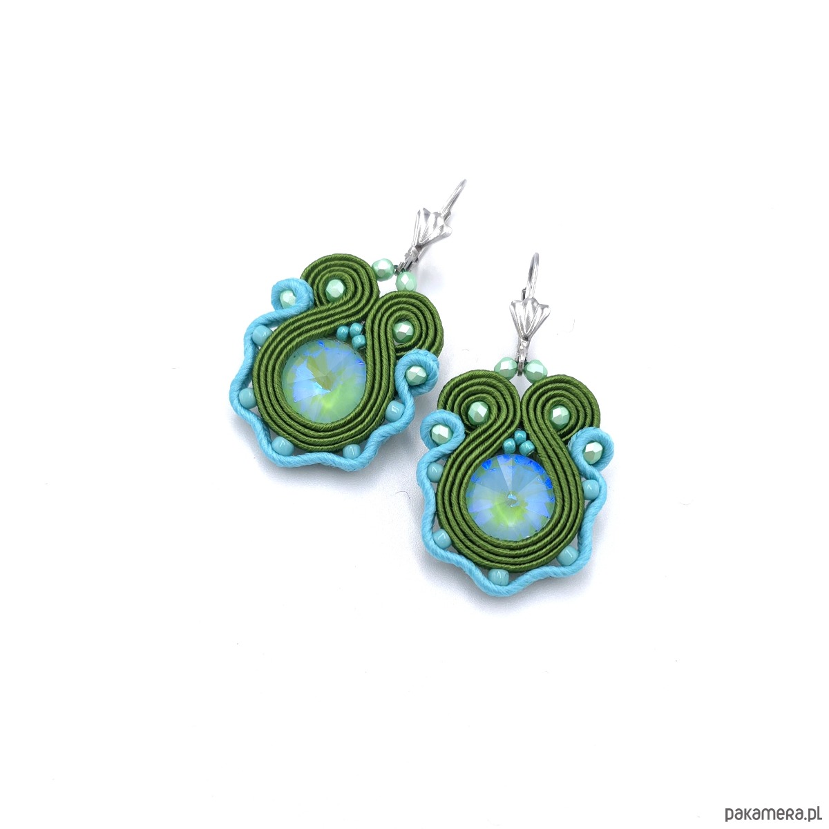 Kolczyki sutasz turkusowo zielone małe wiosenne kolorowe lekkie Flower