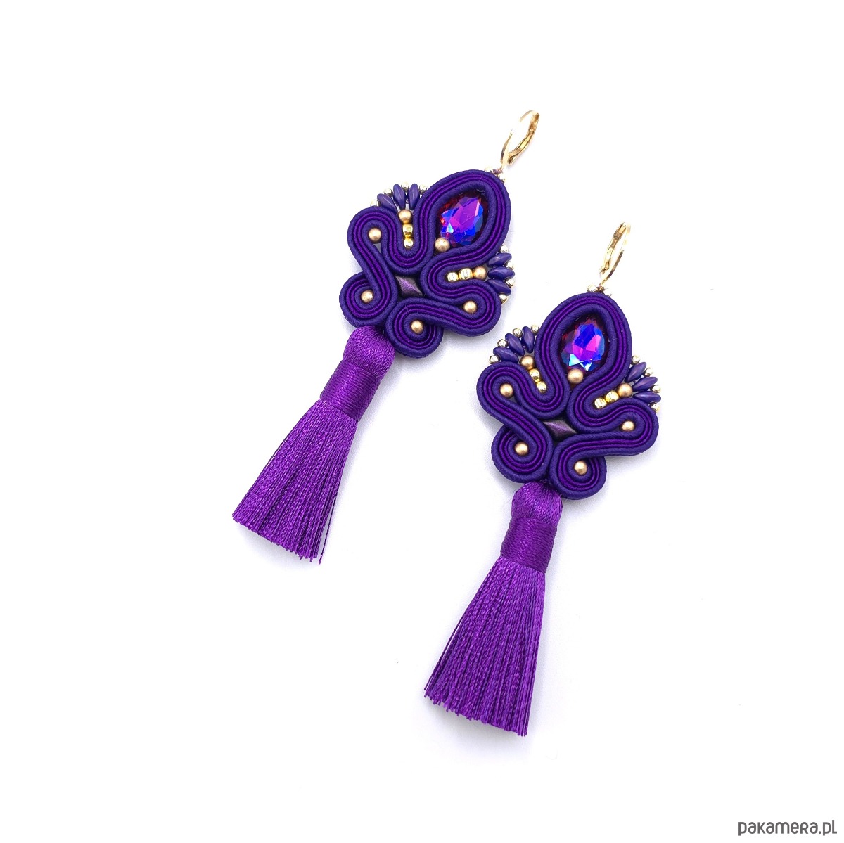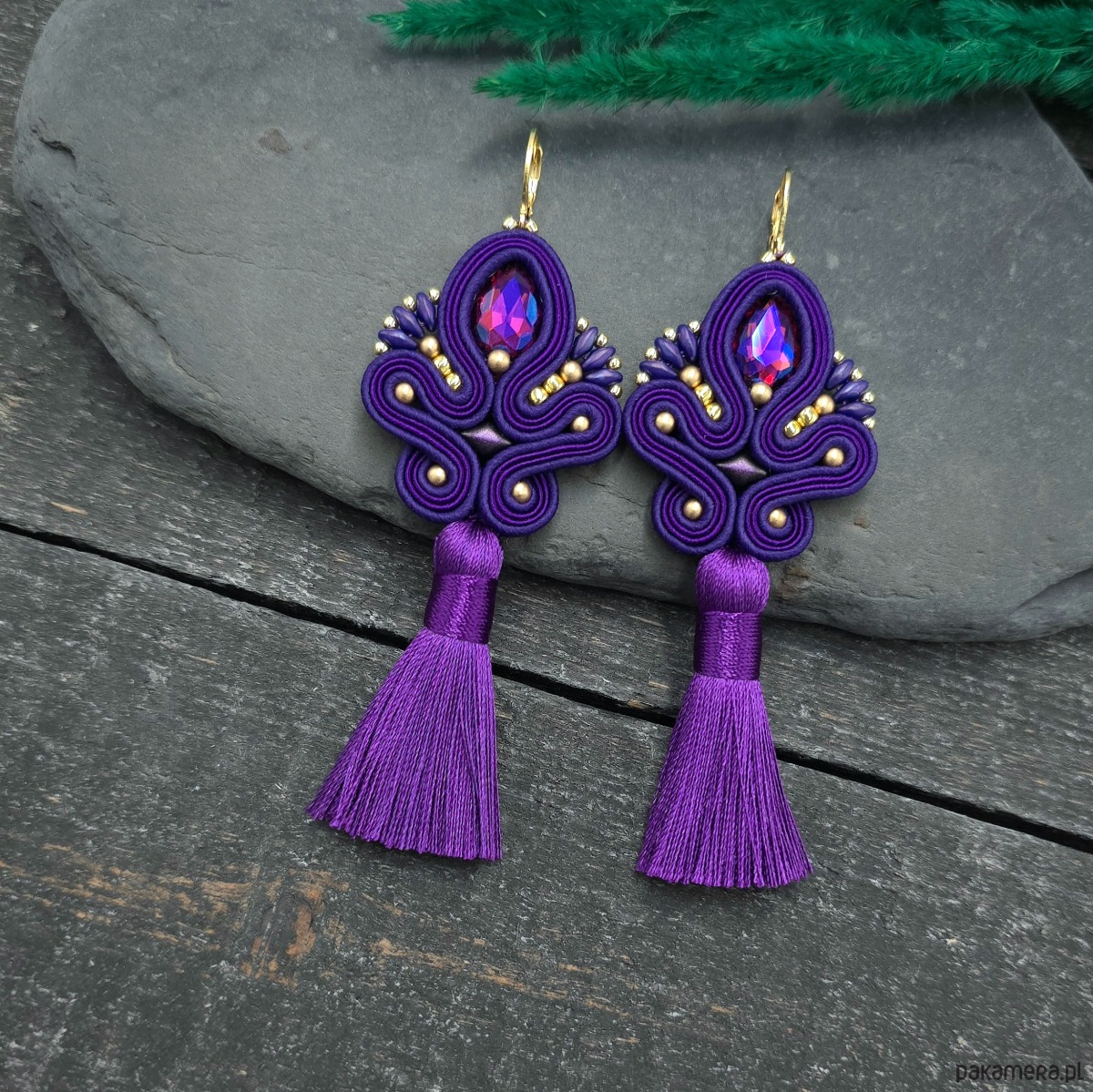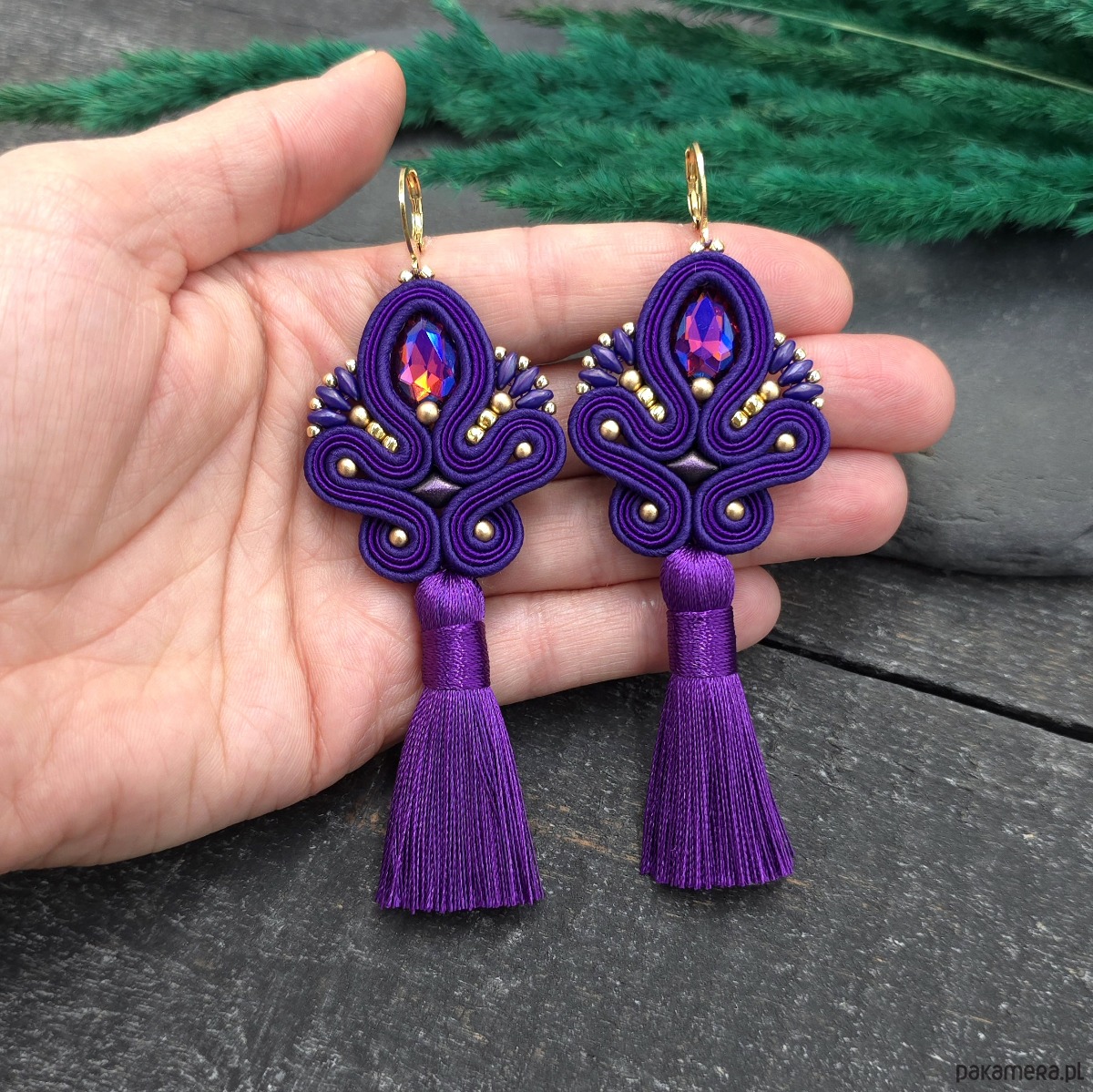 Kolczyki sutasz z chwostami fioletowe długie eleganckie wieczorowe Cosima