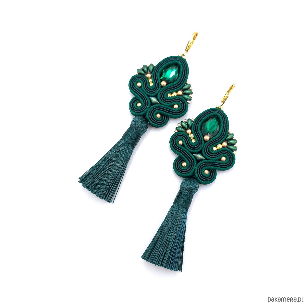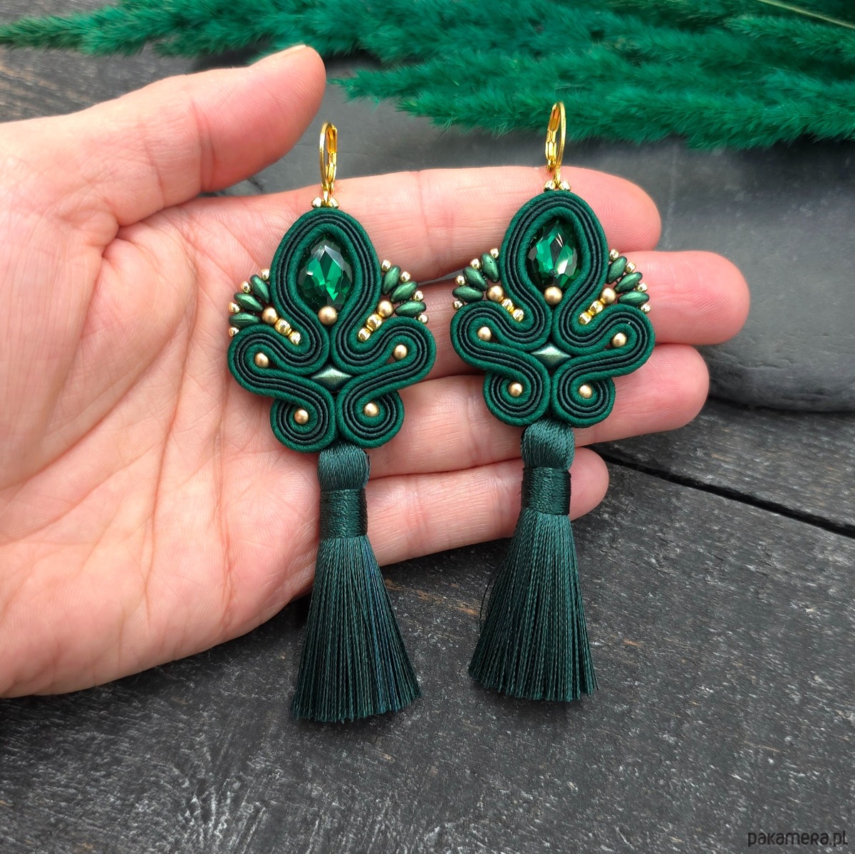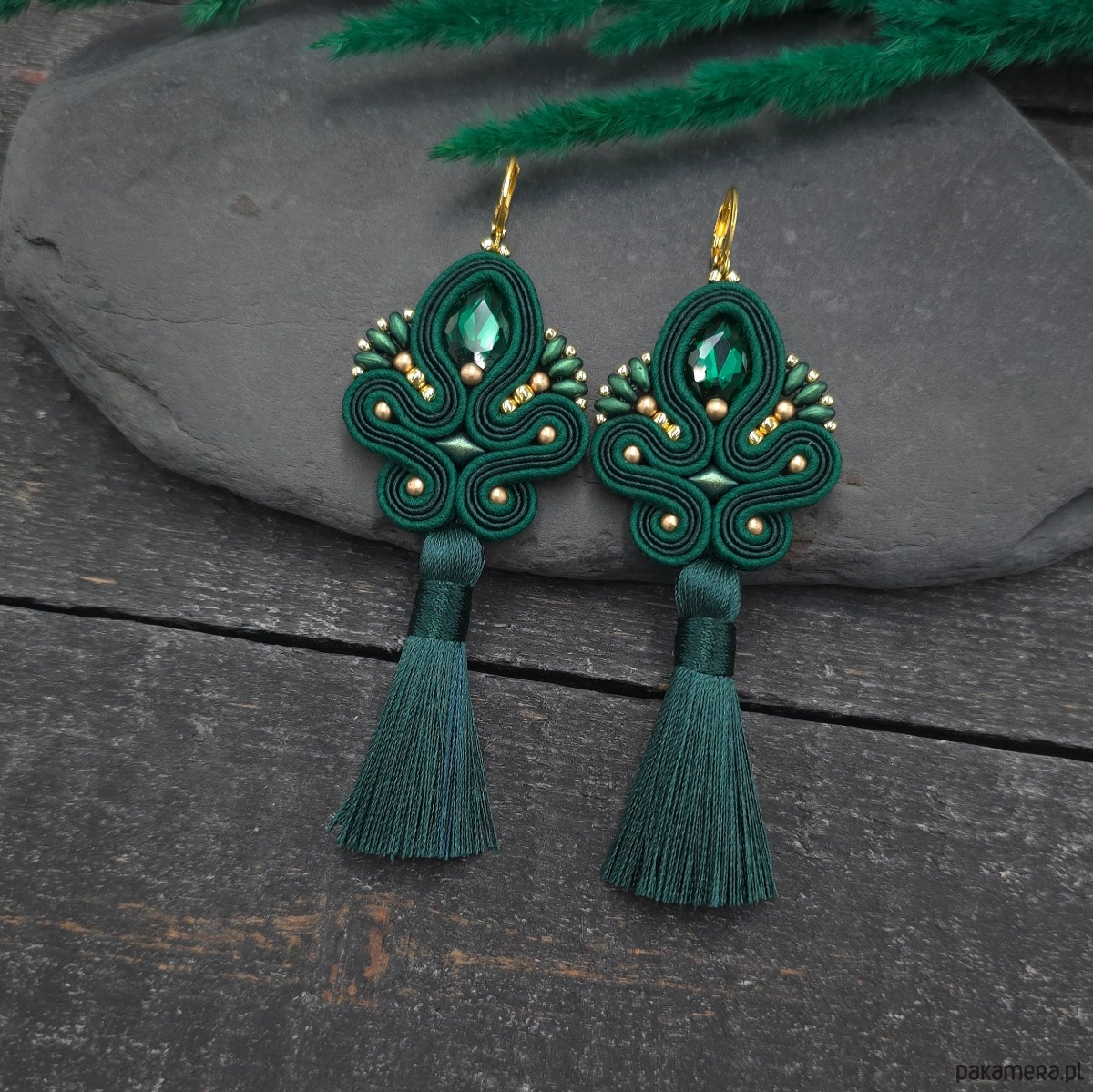 Kolczyki sutasz z chwostami zielone długie eleganckie wieczorowe Cosima