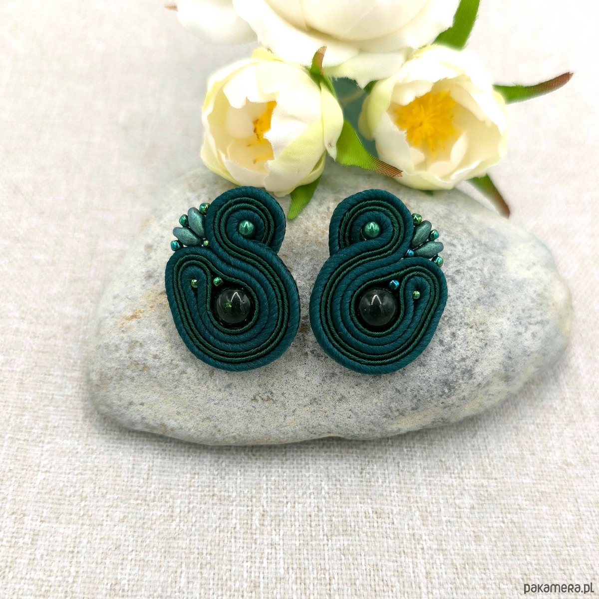 kulki szmaragd nilu, koraliki Toho, koraliki Round Beads, koraliki SuperDuo, włoskie i polskie sznurki sutasz, sztyfty ze stali chirurgicznej.