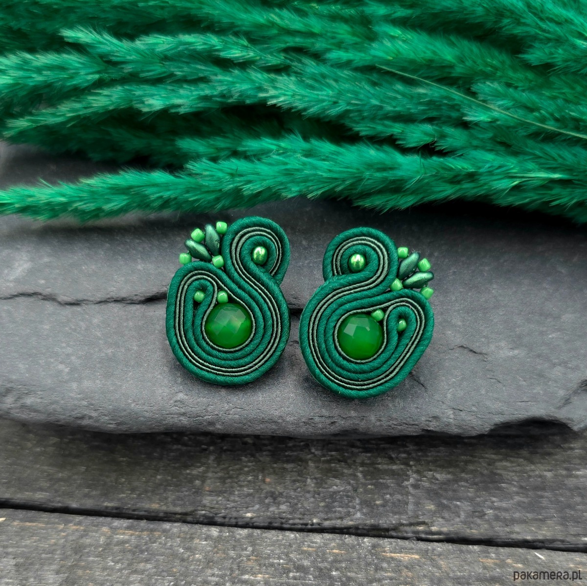 Kolczyki sutasz zielone sztyfty Largo z agatem małe lekkie