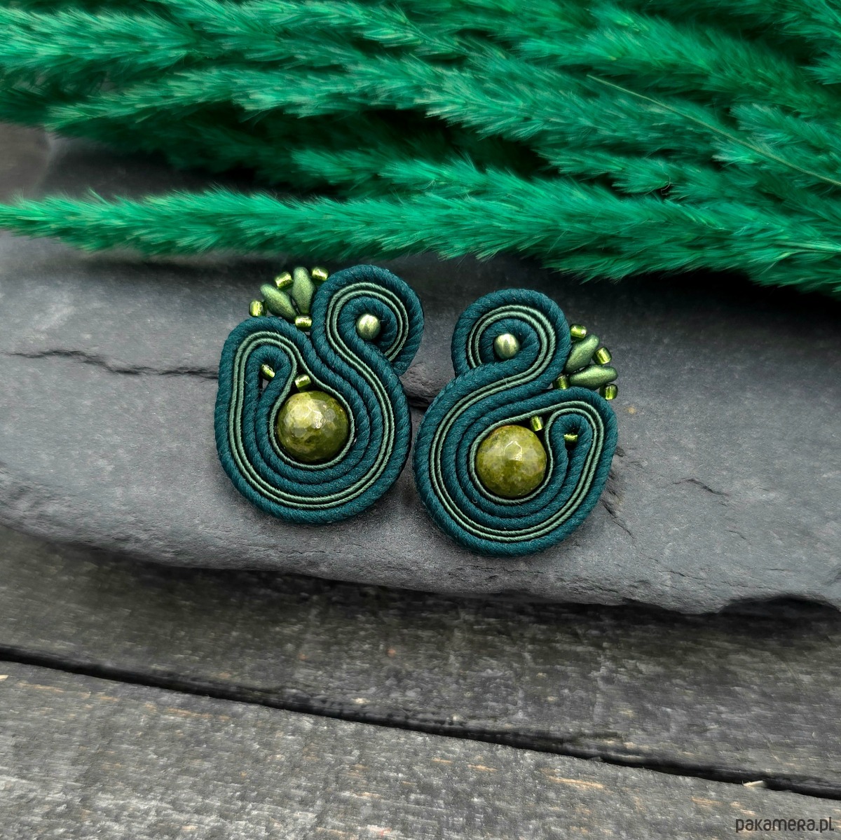 Kolczyki sutasz zielone sztyfty Largo z unakitem małe lekkie