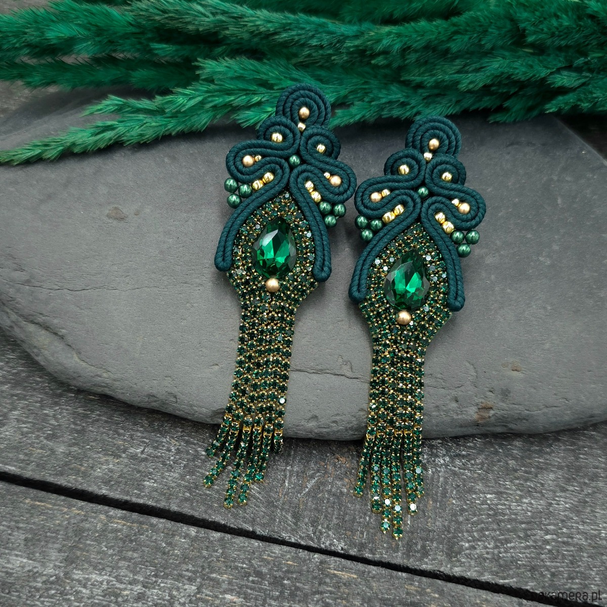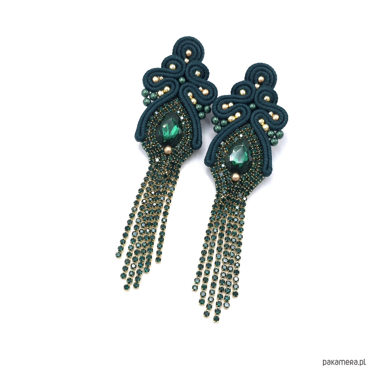 Długie kolczyki sutasz w kolorze zielono-złotym to wyjątkowa propozycja na wieczorowe wyjścia i karnawałowe stylizacje.
