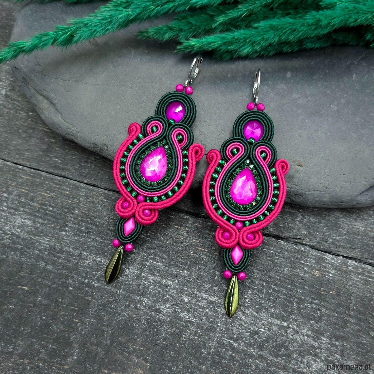 Kolczyki sutasz zielono fuksjowe kolorowe Margo długie energetyczne