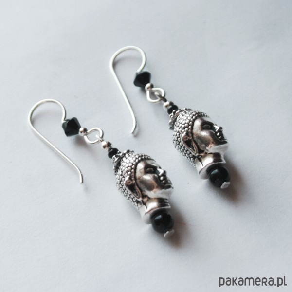 Eleganckie i unikatowe kolczyki autorskie z prześlicznymi miniaturowymi główkami Buddy. Elementy posrebrzane najwyższej próby srebrem (Tierracast USA), z kolekcji KEIT.
