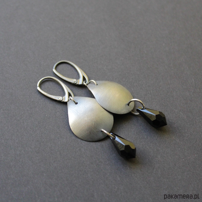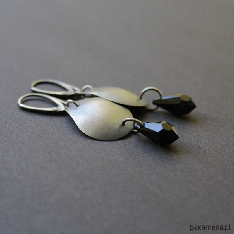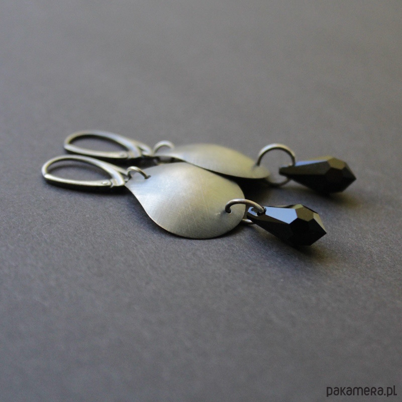 Kolczyki wykonane całkowicie z ręcznie oksydowanego i polerowanego srebra 925.