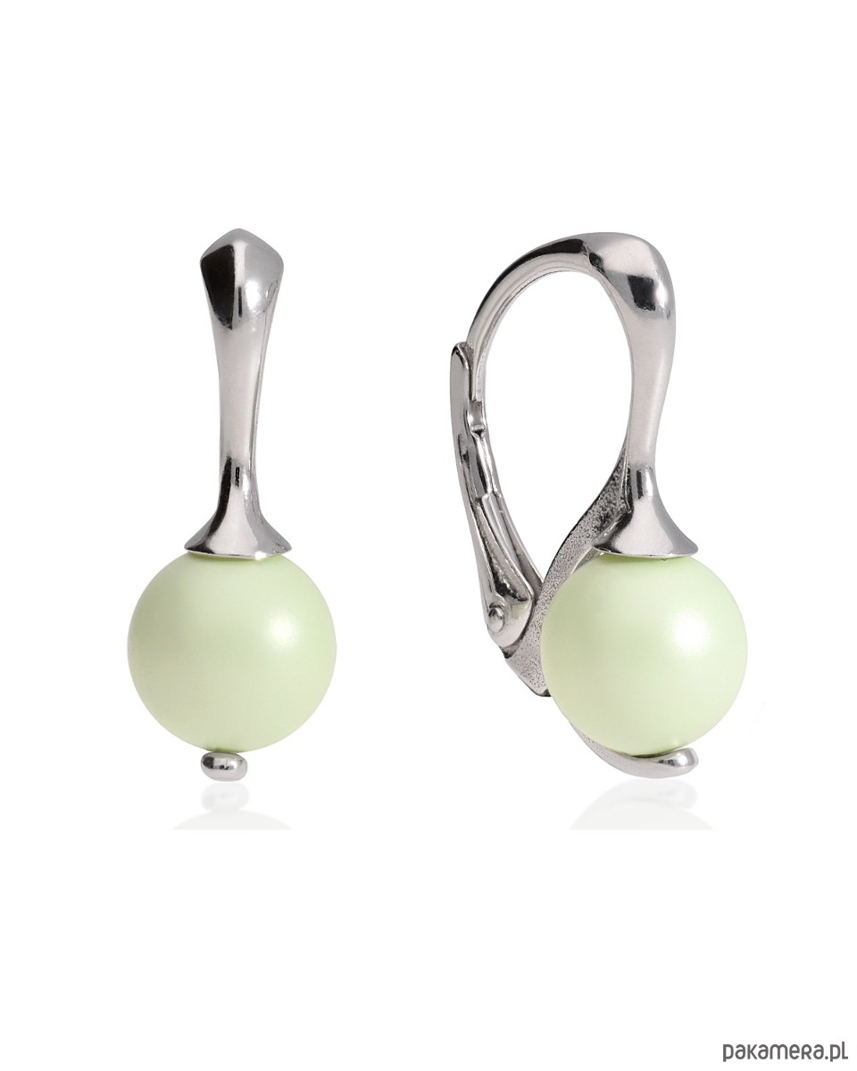 Srebrne kolczyki angielskie z perełkami Swarovski® w jasnym, pastelowym, miętowym kolorze zieleni.